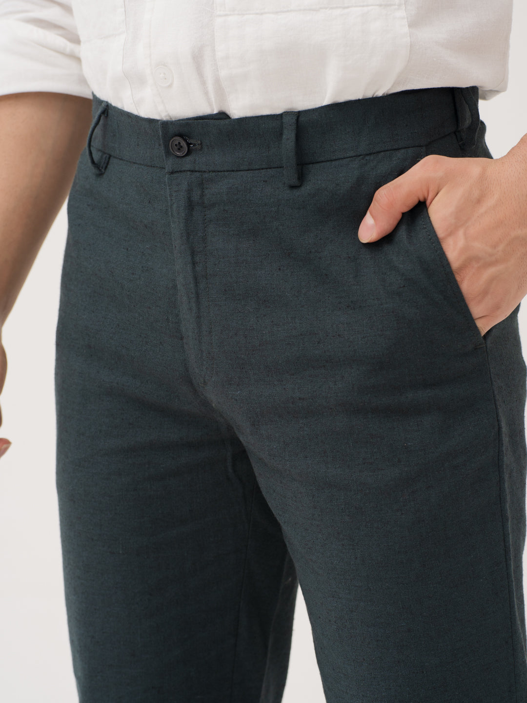 Meet the Plantide Green Linen Sorona Pants: easy on the eyes, even easier on your skin. Made with a 69% Linen and 31% Sorona blend, these Green Linen Sorona trousers are lightweight, moisture-wicking, and built for all-day wear. While classic linen might wilt under pressure, these Green Linen Sorona Pants stay crisp through chaos — thanks to Sorona’s natural stretch and wrinkle resistance. The earthy green pairs effortlessly with both neutrals and bold tones. If you’re someone who wants breathable comfort without compromising on form, these pants are your best-dressed shortcut.