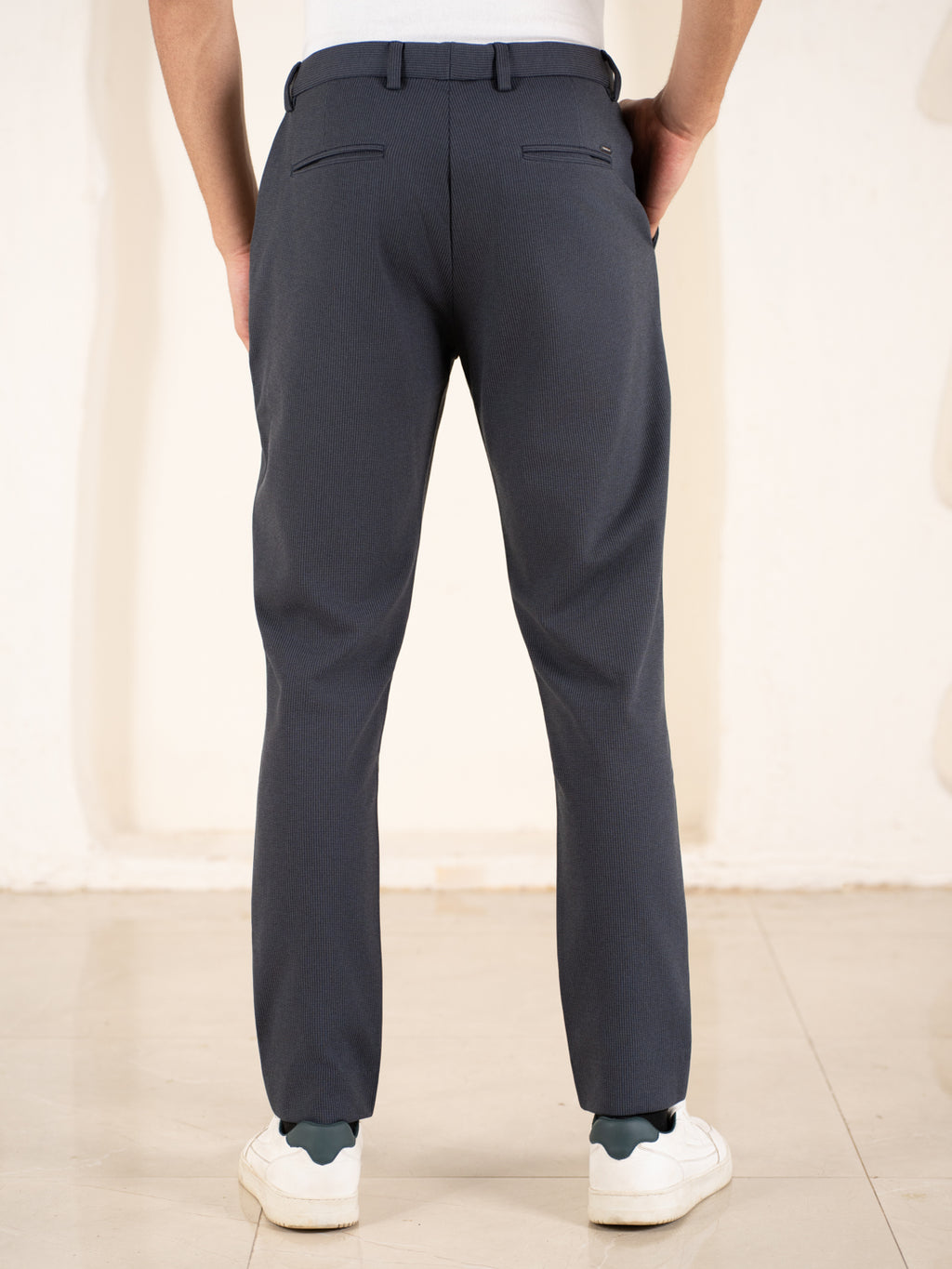 Is black just a color or a symbol of elegance? Meet the Quiet Grey Houndstooth Slim Fit Power Stretch Pants tailored for a sharp, modern silhouette. These quiet grey Stretchable Trousers are crafted from a premium polyester-viscose-elastane blend for breathable comfort and flexibility. With a slim fit and four-way stretch, they move with you effortlessly. Moisture-wicking and wrinkle-resistant properties keep you looking crisp. Whether it’s work mode or weekend plans, these grey stretchable trousers bring the perfect balance of comfort and confidence. Style that fits right, feels right, and looks even better.