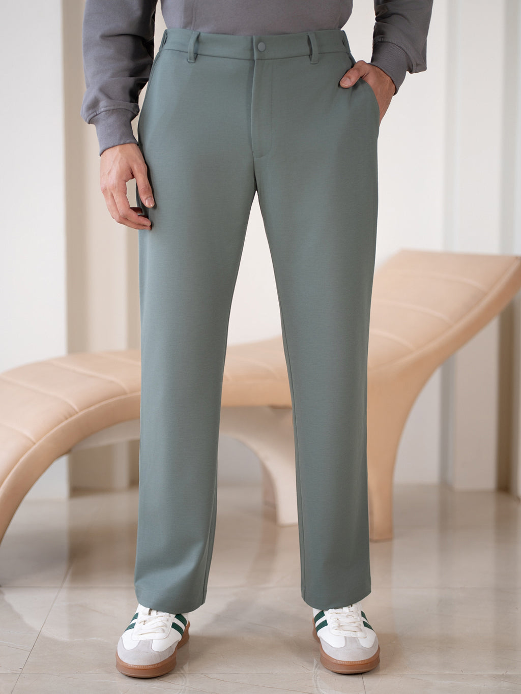 The Ranger Green Stretchable Travel Pant is built for the man who wants a rugged aesthetic without the heavy, abrasive feel of cargo or denim. These green stretchable travel pants for men offer a deep olive tone in a high-performance 4-way stretch fabric that feels incredibly light. Unlike ordinary green stretchable trousers, these are engineered for the "active traveler" resistant to wrinkles, moisture, and odors. The internal shirt-gripper and flexible waistband ensure that whether you are on a site visit or at a rooftop social, you remain tucked-in and comfortable.