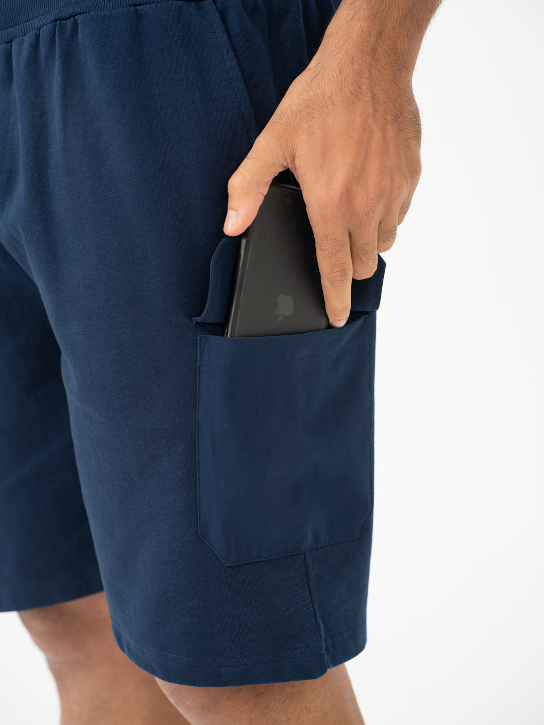 Say hello to your multitasking mood in shorts: the Rider Navy Relaxed Fit Cargo Sweatshorts. These navy sweatshorts are made for errands that start with “just a quick stop” and end five hours later. A cotton-stretch blend keeps things breathable, while six pockets—including rugged nylon cargos—hold everything from your phone to your loyalty card stash. These Errand Sweatshorts don’t just keep up—they flex with you, wick sweat, and somehow still look put-together. For men who want navy cotton sweatshorts for men that hustle as hard as they chill.