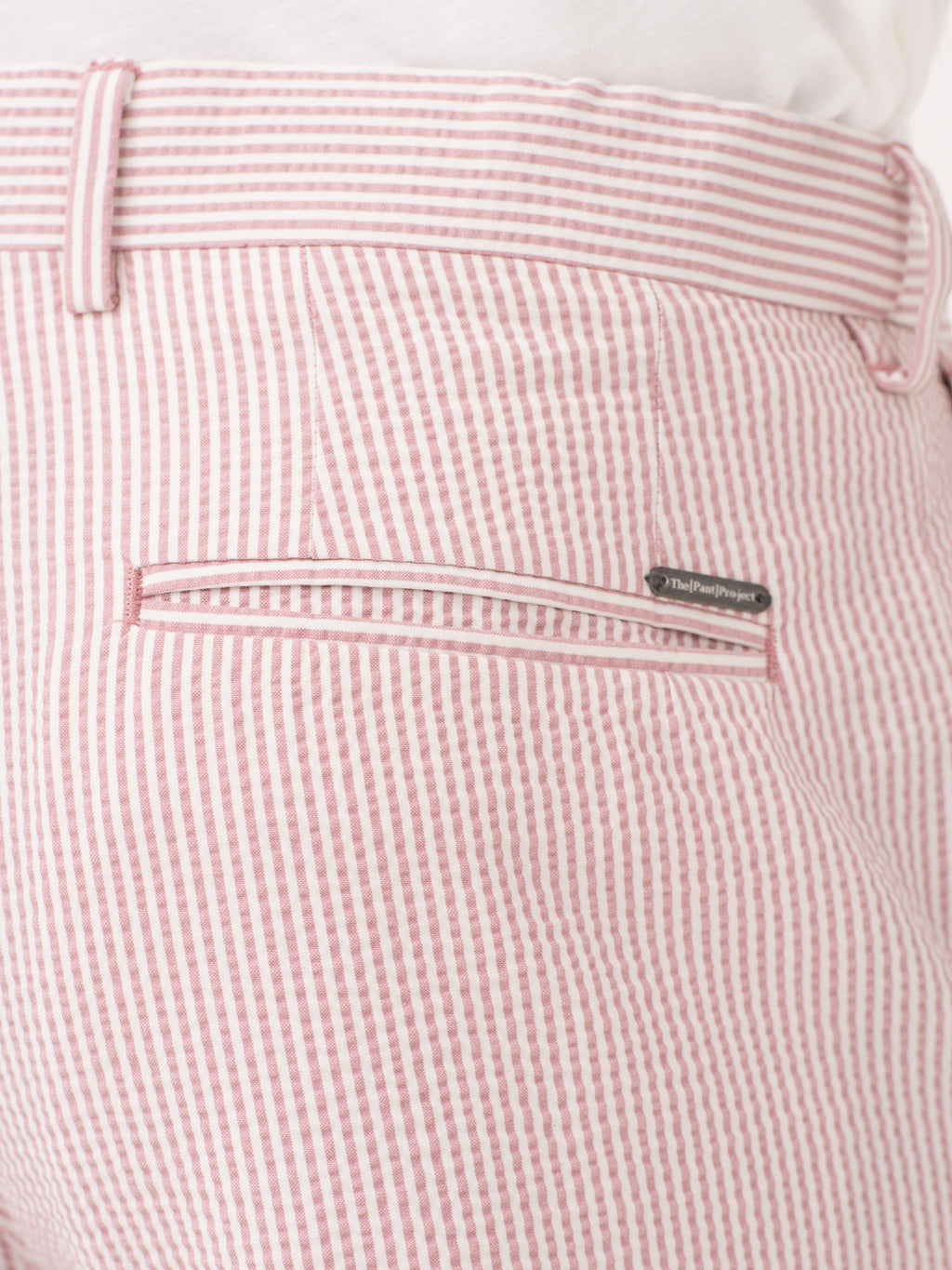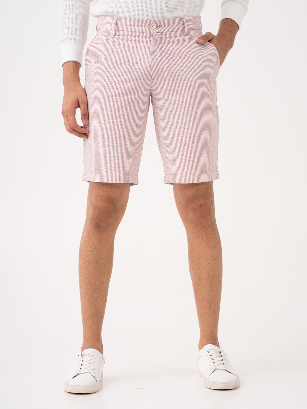 Bold meets breezy in the Romeo Rouge Stripes Seersucker Shorts, reimagined as summer-ready chino shorts. This statement piece balances vibrant red tones with subtle seersucker texture for a breathable, wrinkle-resistant, and moisture-wicking finish. These Romeo Rouge stretchable seersucker shorts, now in short form, come with built-in stretch and airy comfort for long sunny days. Whether you’re making brunch plans or heading to a beachside dinner, these shorts bring the right kind of attention. Pair with neutrals or a crisp white shirt for a balanced, bold look. The vibe? Passionate, playful, and unapologetically stylish—just like a perfect summer romance.