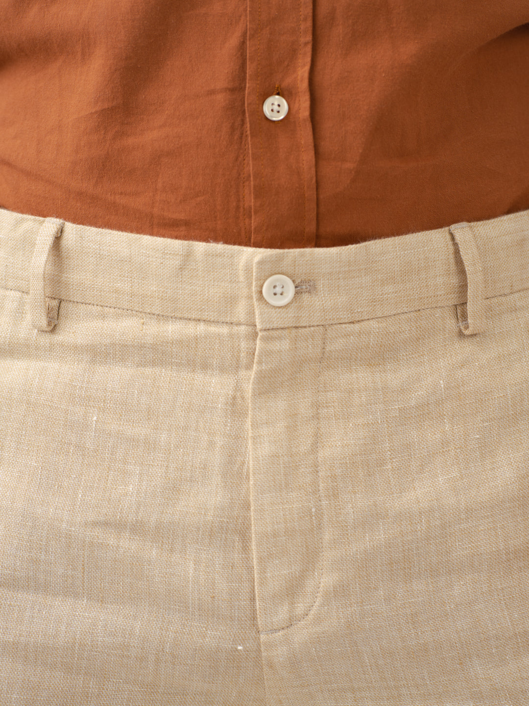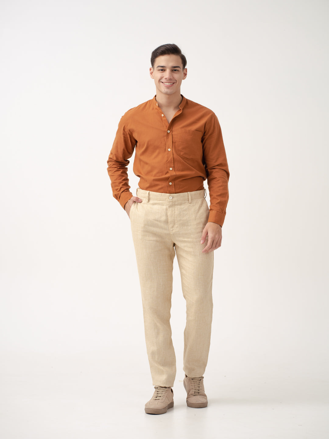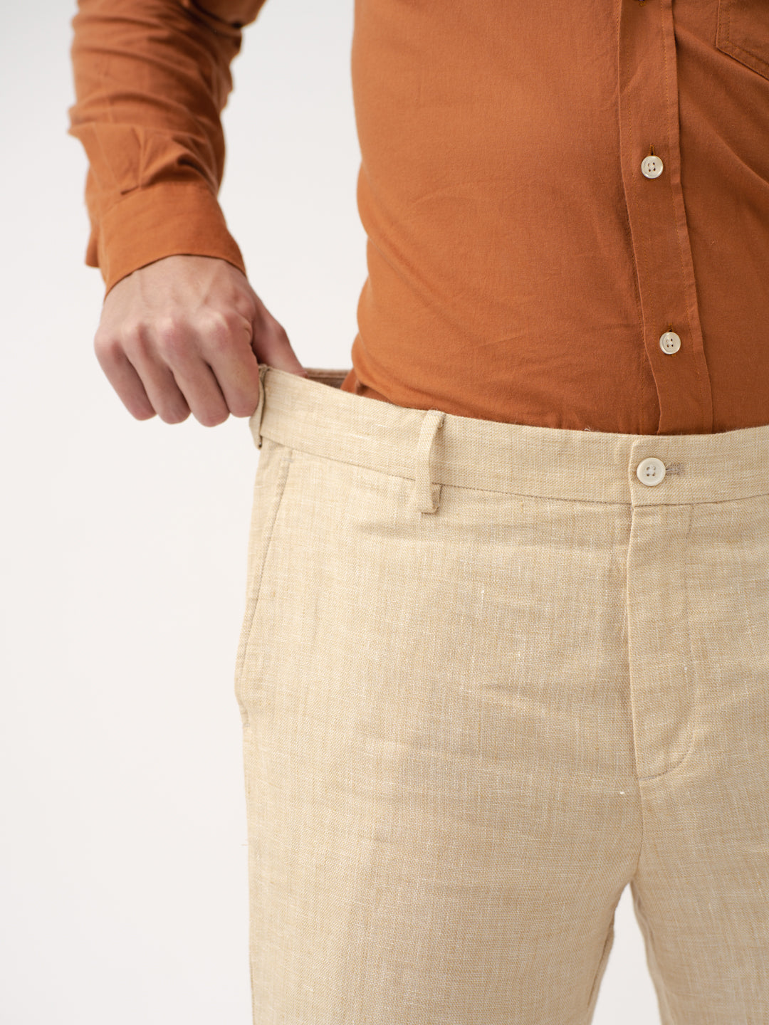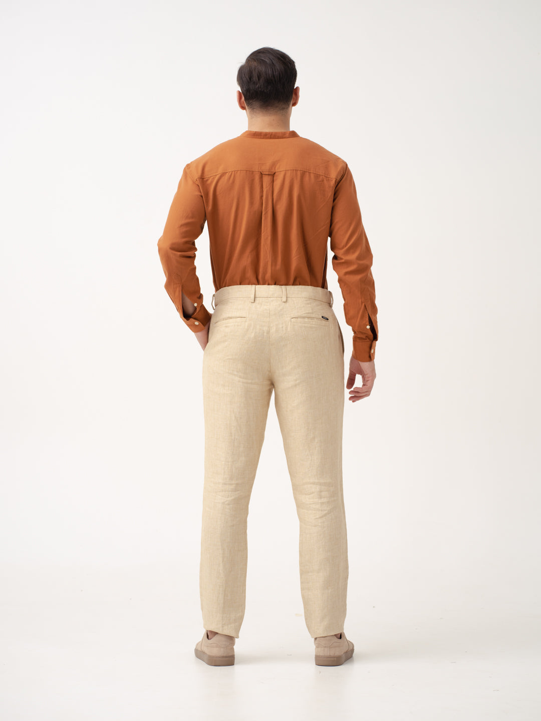 Crafted using 100% Luxurious Linen to give you lightweight, breathable comfort in every wear. Our model in the image wears a Slim Fit.