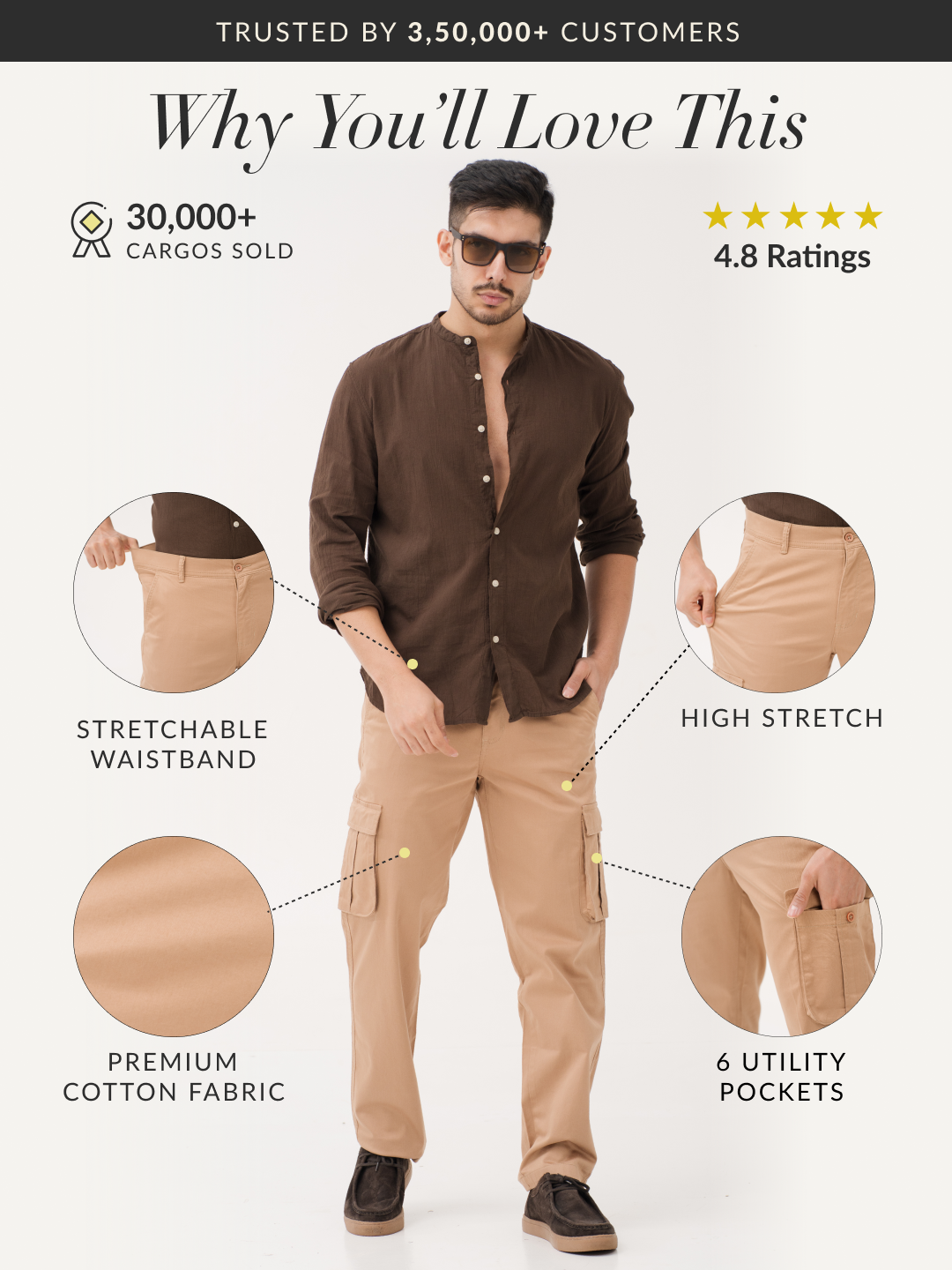 The Sandhill Khaki Relaxed Fit Stretch Cargo Pants combine laid-back style with everyday functionality. Made from a durable cotton blend with added stretch, these Sandhill Khaki Stretch Cargo Pants offer a relaxed fit that doesn’t compromise on comfort. With six pockets for ample storage, these khaki cargo pants for men are ideal for keeping your essentials close. The breathable, moisture-wicking fabric ensures all-day comfort, making them perfect for casual outings or weekend adventures. These cargos bring you both the practicality you need and the relaxed, stylish look you want.