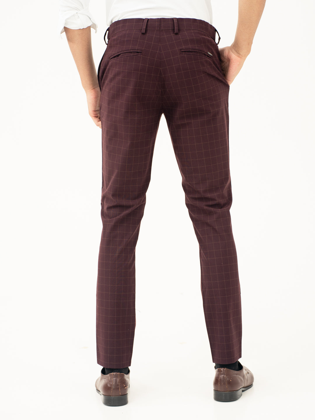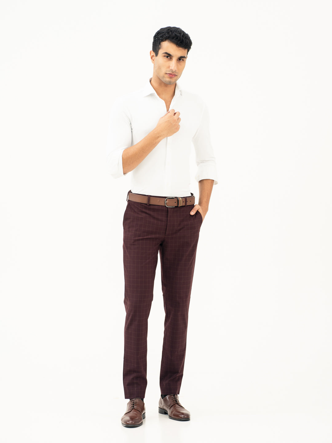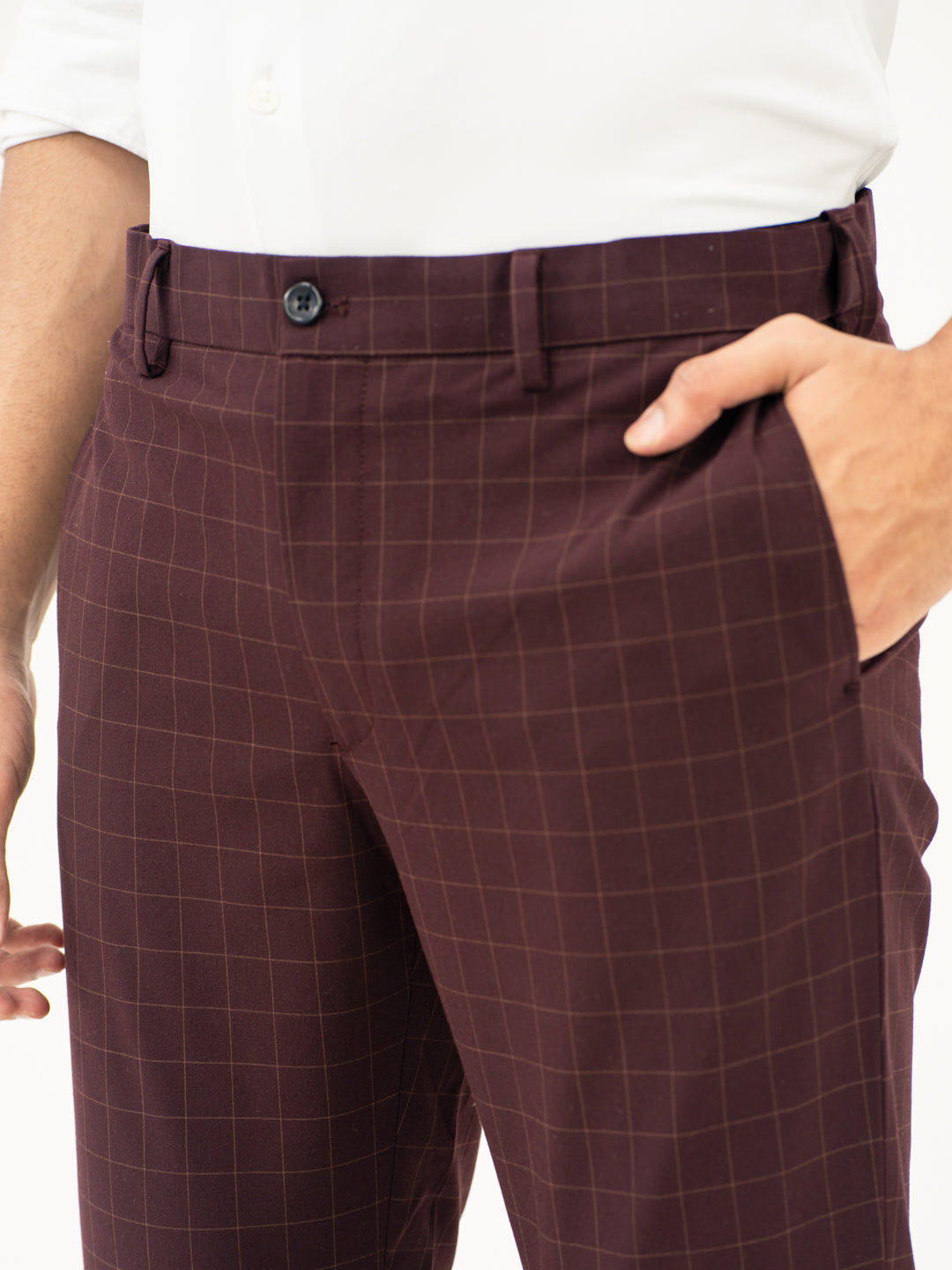 Bring elegance to your workwear with the Sangria Wine Checks Formal Pants. These Sangria Wine Checks Formal Trousers offer a deep, rich wine hue that pairs perfectly with the classic checkered design. Crafted from stretchable fabric, they provide comfort and flexibility throughout the day. Whether you’re in back-to-back meetings or enjoying a night out, these pants offer the perfect combination of style and comfort. Looking for wine stretchable formal trousers with a twist? These pants are a perfect fit, adding a touch of sophistication to any formal occasion.