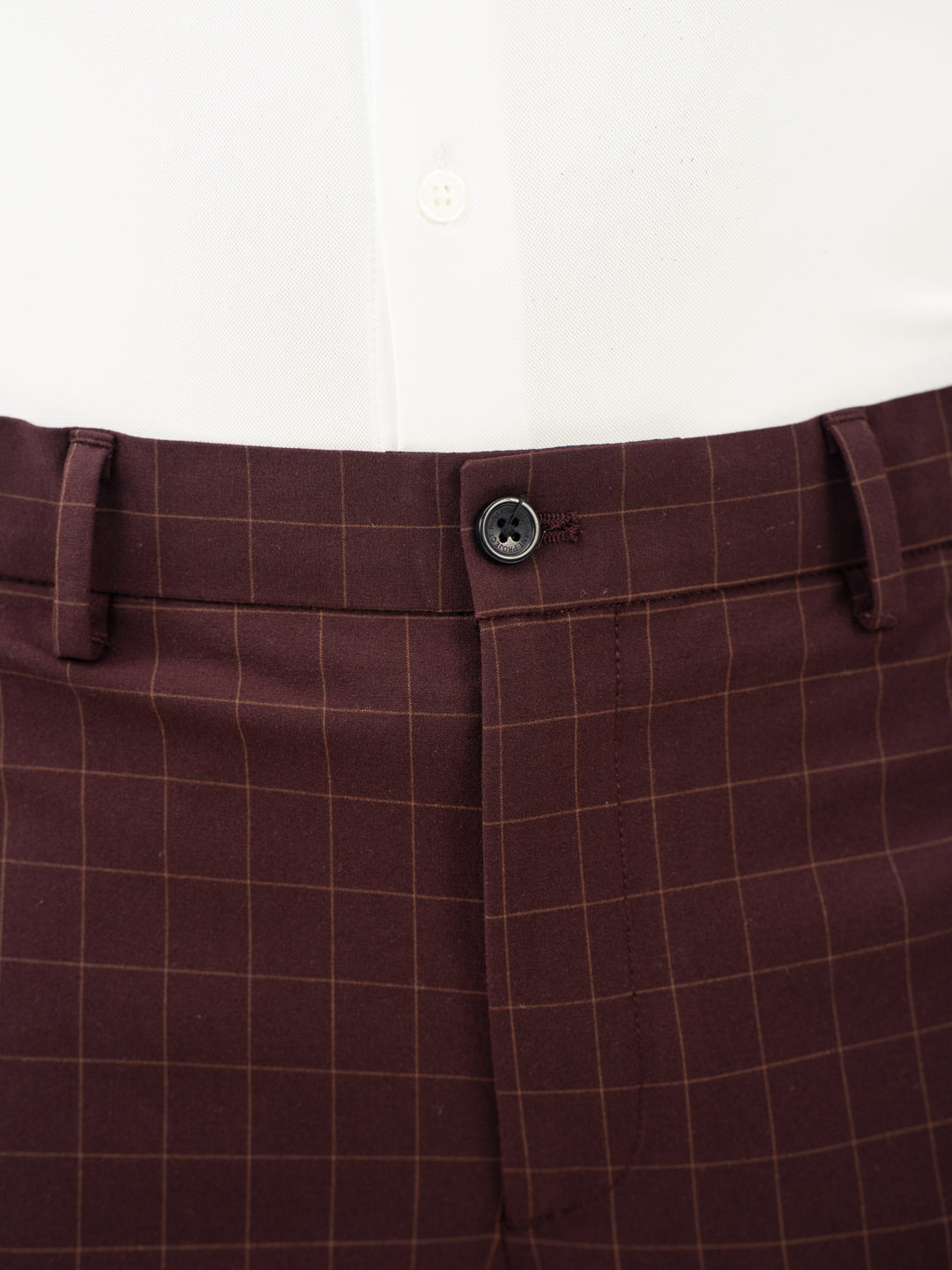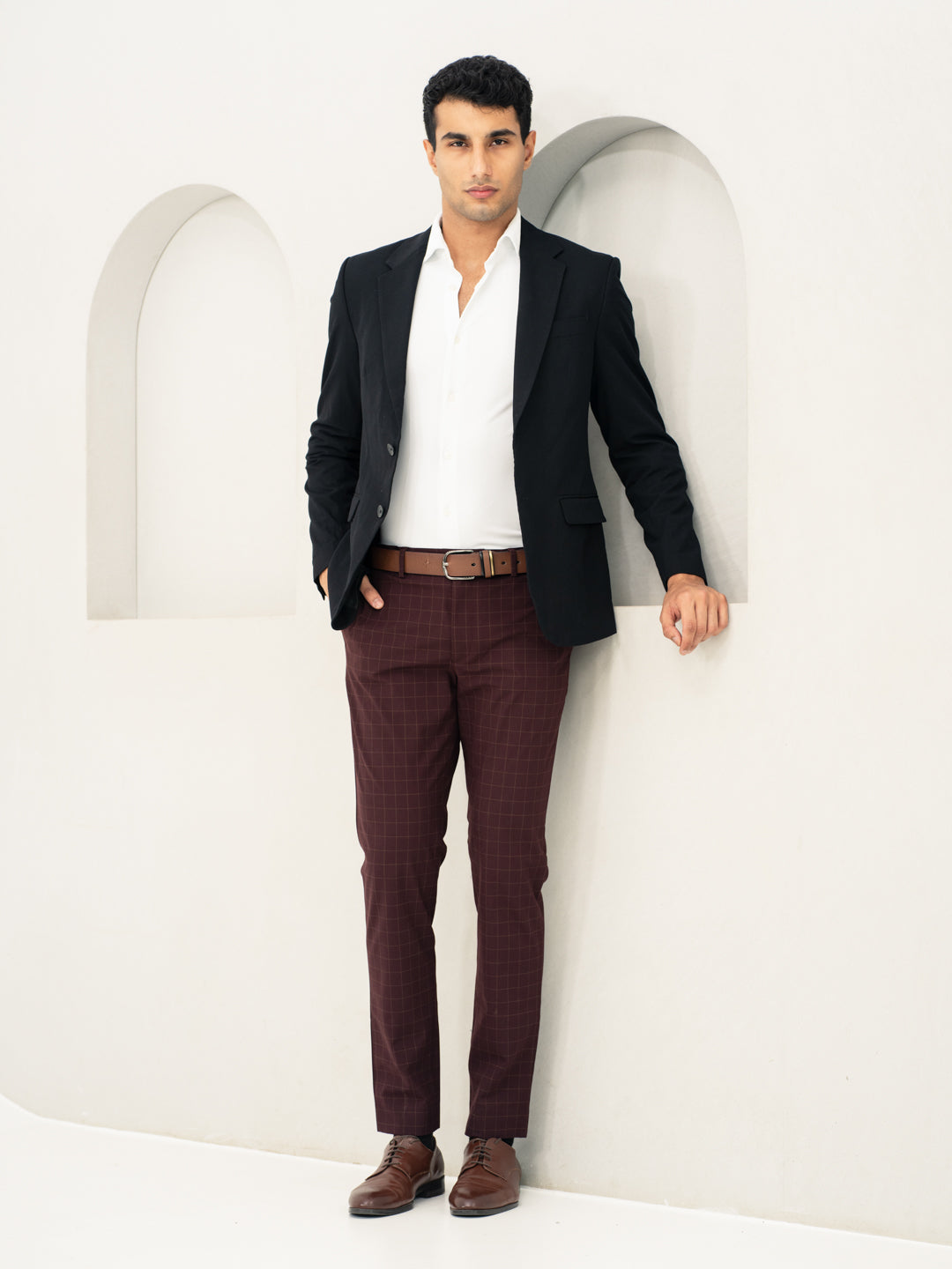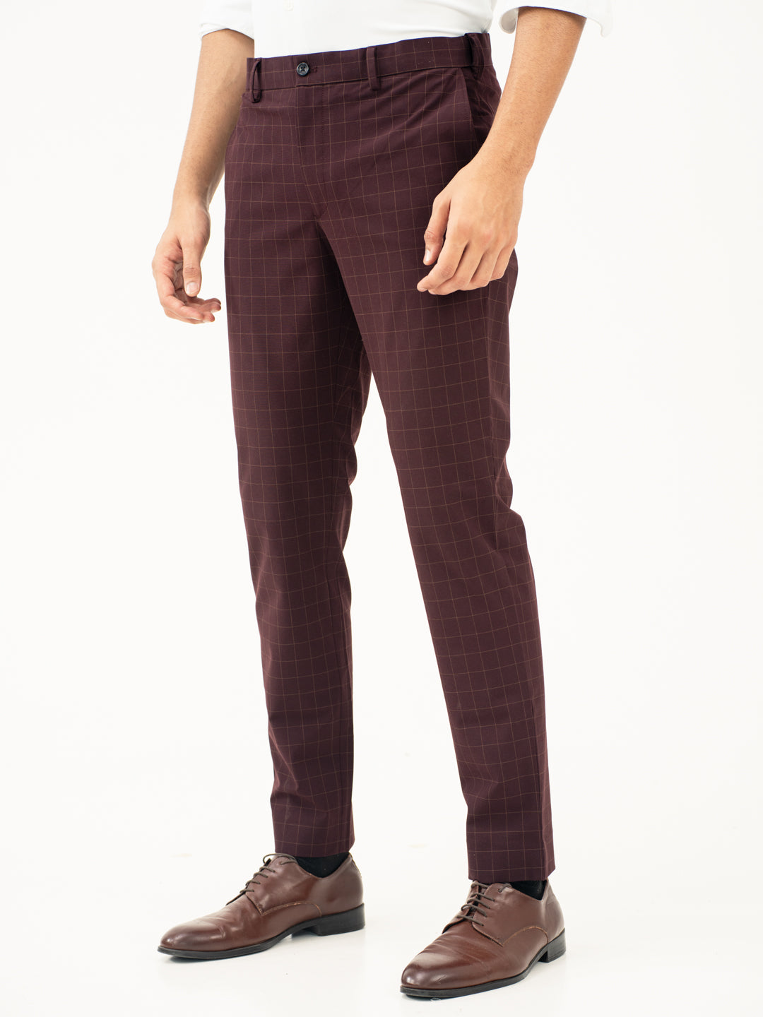 Bring elegance to your workwear with the Sangria Wine Checks Formal Pants. These Sangria Wine Checks Formal Trousers offer a deep, rich wine hue that pairs perfectly with the classic checkered design. Crafted from stretchable fabric, they provide comfort and flexibility throughout the day. Whether you’re in back-to-back meetings or enjoying a night out, these pants offer the perfect combination of style and comfort. Looking for wine stretchable formal trousers with a twist? These pants are a perfect fit, adding a touch of sophistication to any formal occasion.