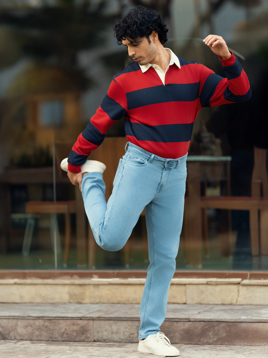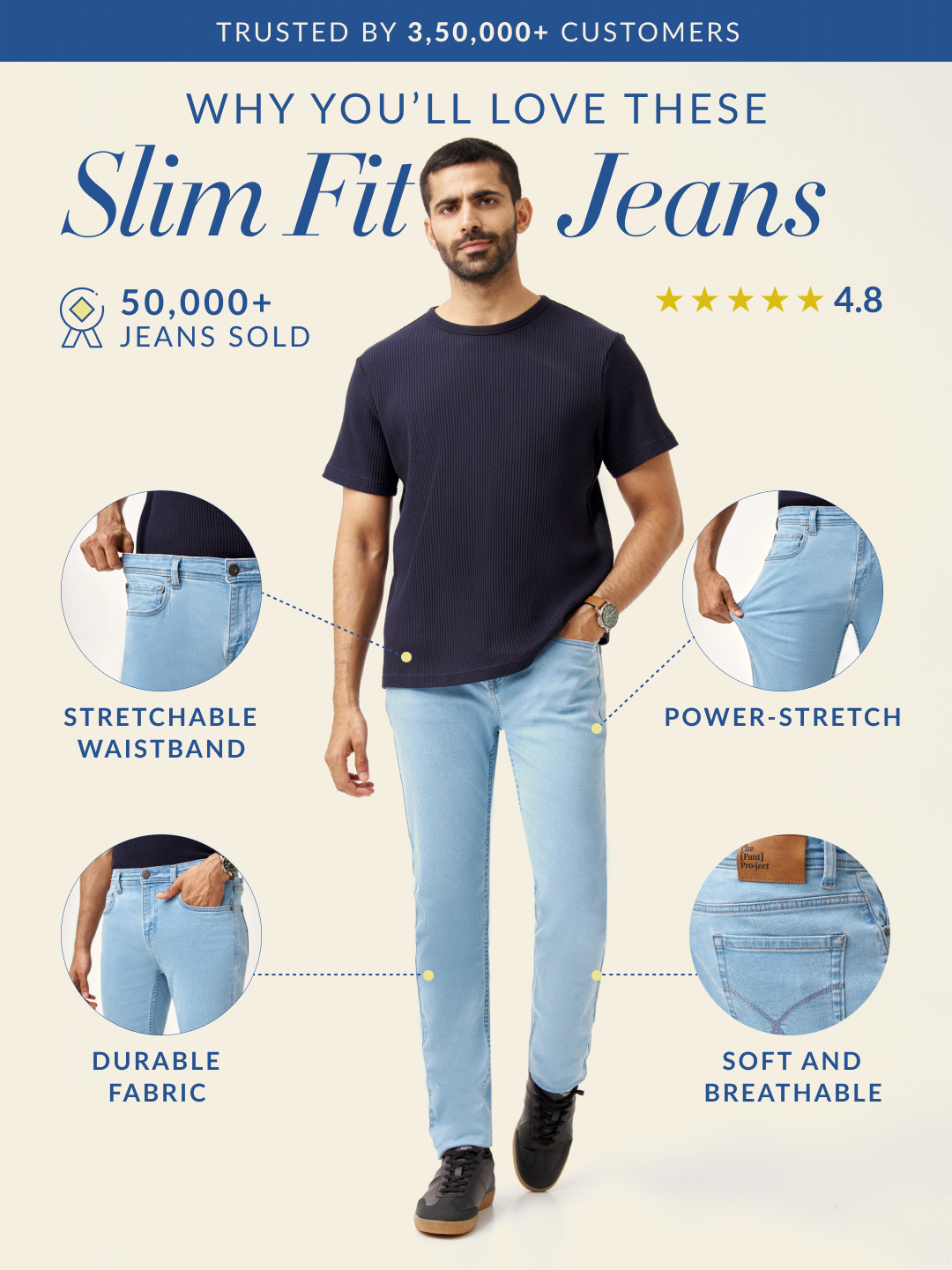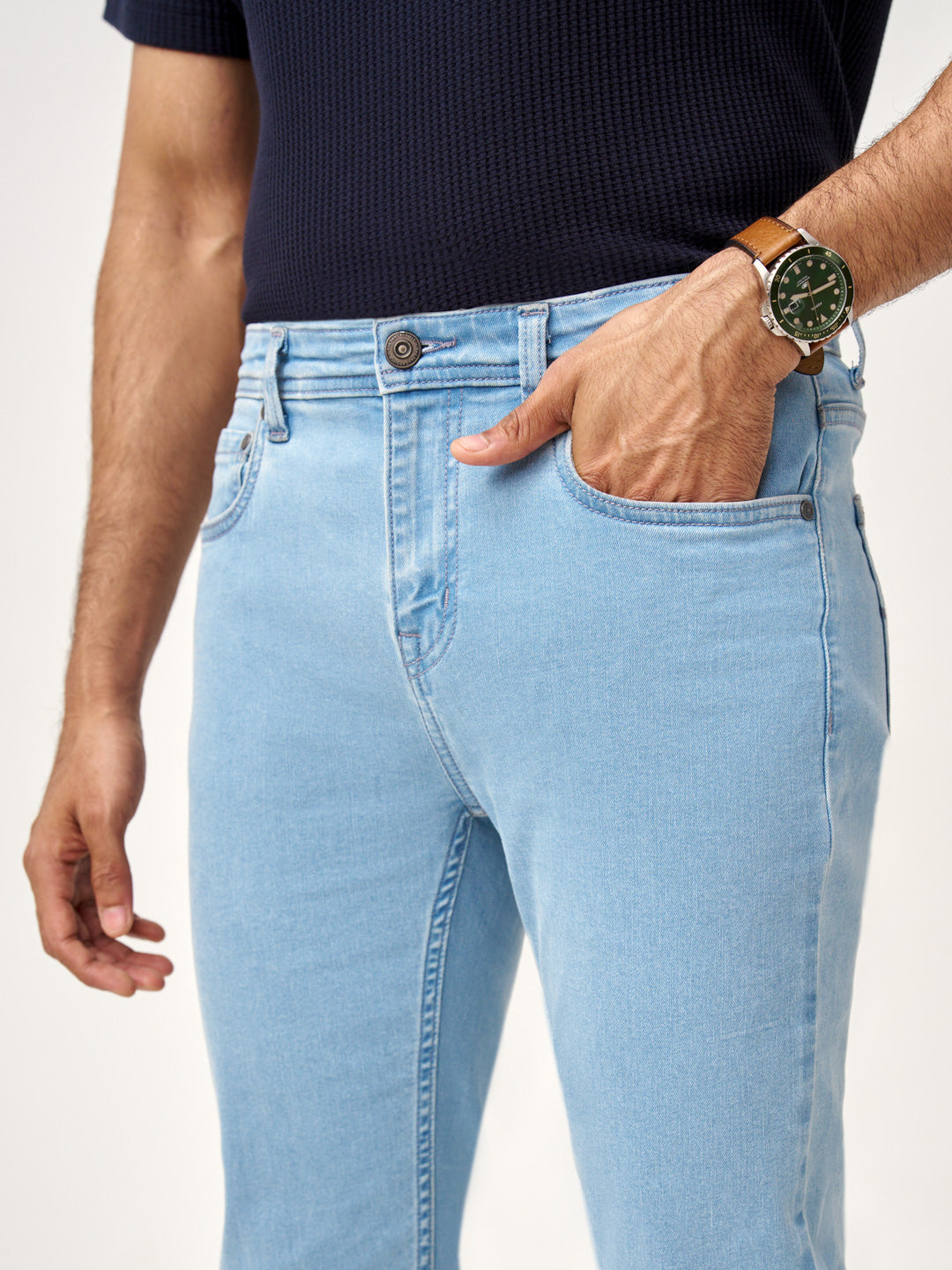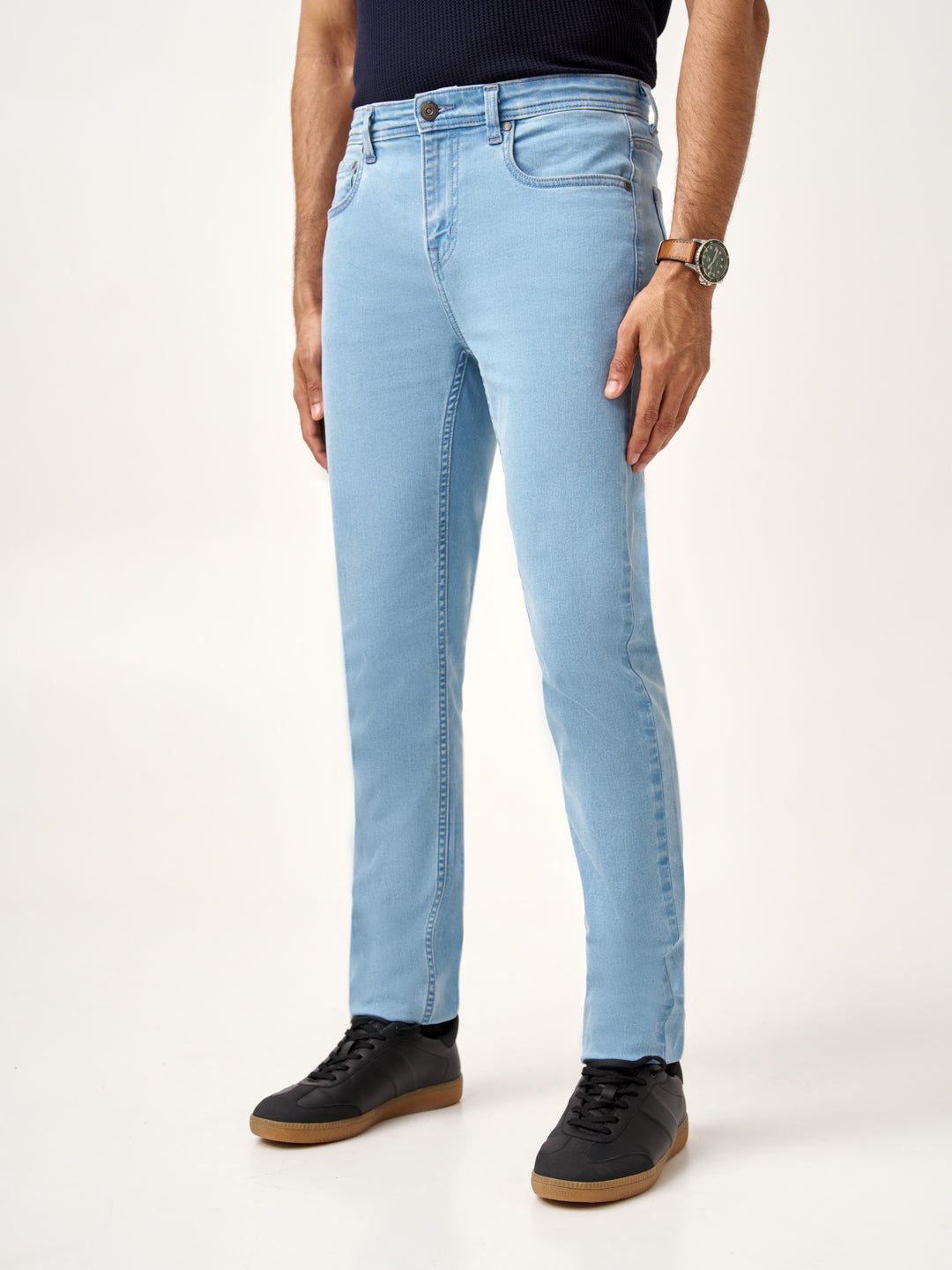 These sky blue stretchable slim fit jeans are made for those who live freely, with every fade and crease capturing your journey. Crafted from power-stretch fabric, they offer unmatched flexibility and comfort, ensuring effortless movement throughout the day. The refreshing sky blue wash adds a modern, laid-back vibe, perfect for casual outings or weekend getaways. Whether you’re on the move or relaxing, these jeans adapt to your lifestyle. Elevate your wardrobe with these sky blue slim fit jeans for men, designed for timeless style and everyday comfort.