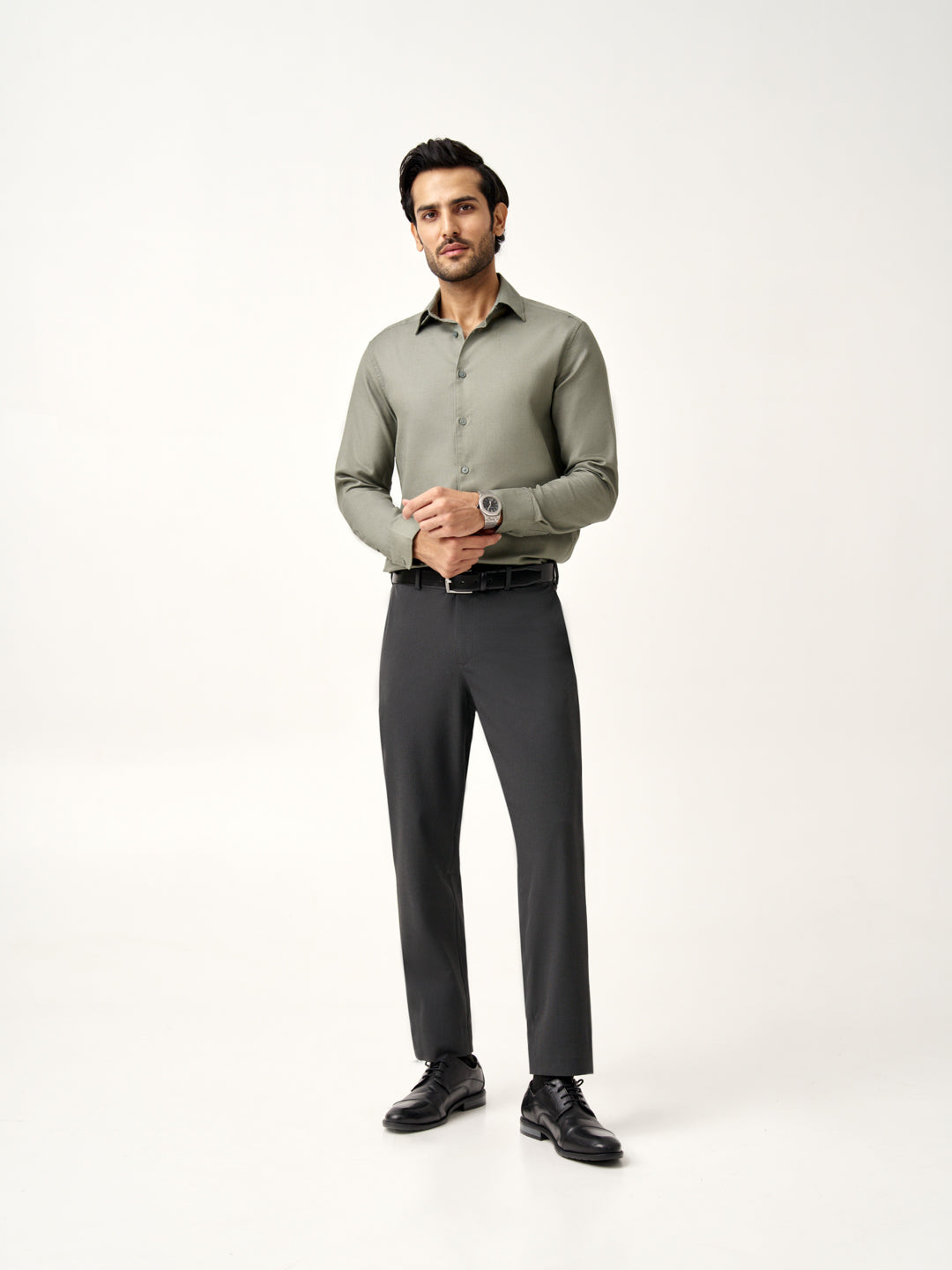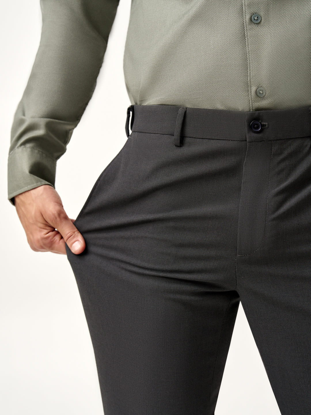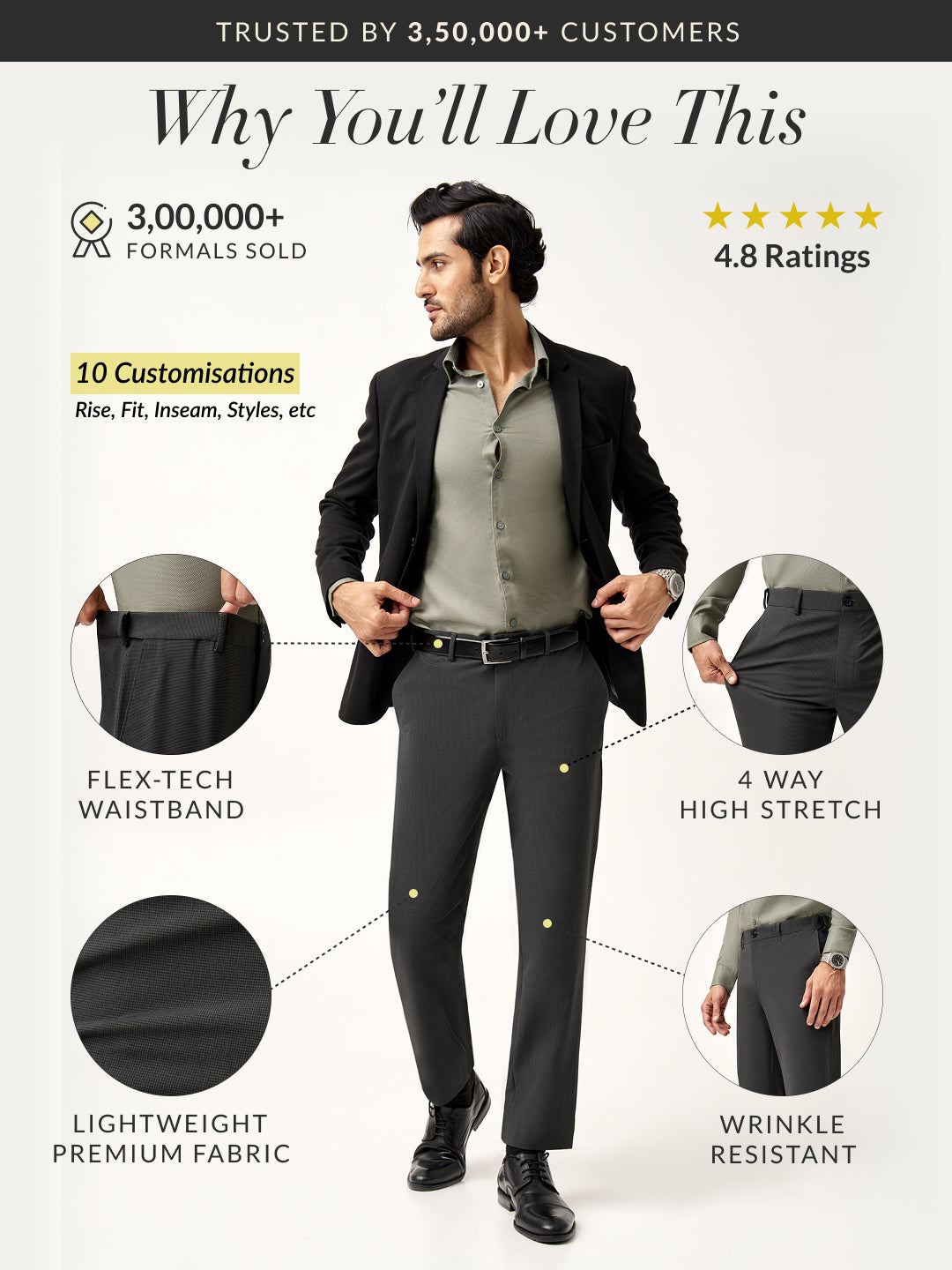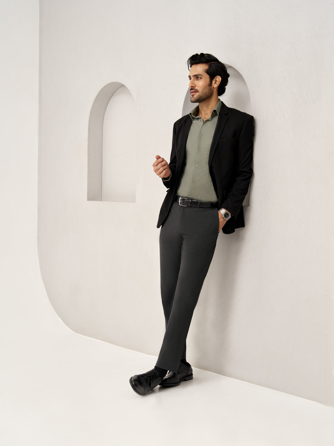 Crafted using a premium blend of 62% Polyester, 33% Viscose & 5% Elastane for lightweight comfort and additional stretch for semi-formal wear. Our model in the images wears a Slim Fit.