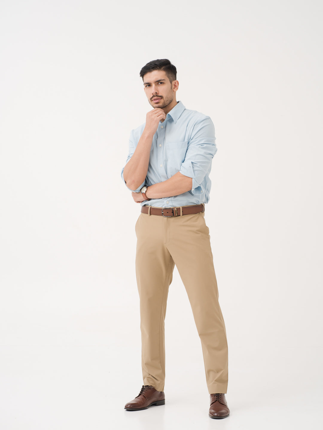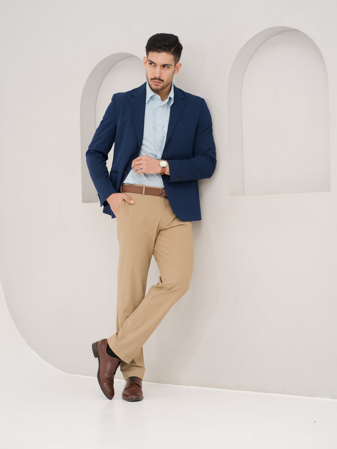 For the man who’s always on the move, the Somewhere Khaki Relaxed Fit Stretch Formal Pant are made to keep pace. With 4-way stretch and a FlexTech waistband, they offer unmatched comfort from morning meetings to midnight plans. The wrinkle-resistant, moisture-wicking fabric keeps you looking fresh, while the rich navy colour brings effortless polish. Lightweight, breathable, and sharp—it’s everything you want in your everyday pair. These Khaki stretchable formal trousers (in a navy twist) are the wardrobe staple you didn’t know you needed, but won’t want to take off.