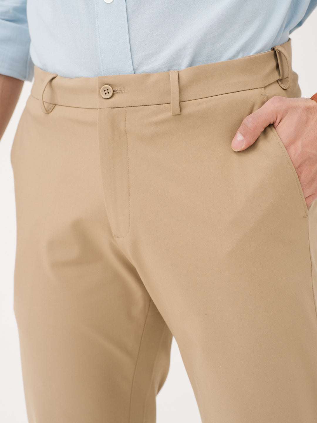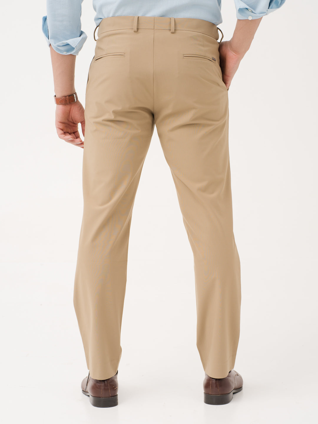 Khaki Relaxed Fit Stretchable Formal Trousers | Lightweight & Wrinkle Resistant Formal Trousers With Flextech Waistband