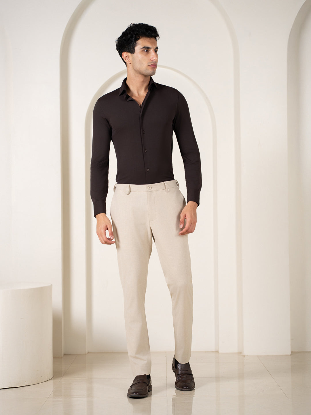Some trousers just exist. The Spaniel Khaki Houndstooth Slim Fit Stretch Formal Trousers perform. Designed for long workdays, business travel, and post-5 PM plans, they’re cut for comfort and made to move. With 4-way stretch, a FlexTech waistband, and wrinkle-resistant, moisture-wicking fabric, they handle pressure better than most bosses. Lightweight and breathable, these khaki stretchable formal trousers feel as good at 9 PM as they did at 9 AM. No sagging, no creasing, no complaints. Just one reliable pair that works harder than your calendar. Go ahead — upgrade your everyday with pants that overdeliver.