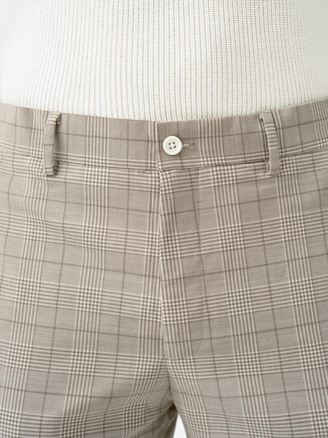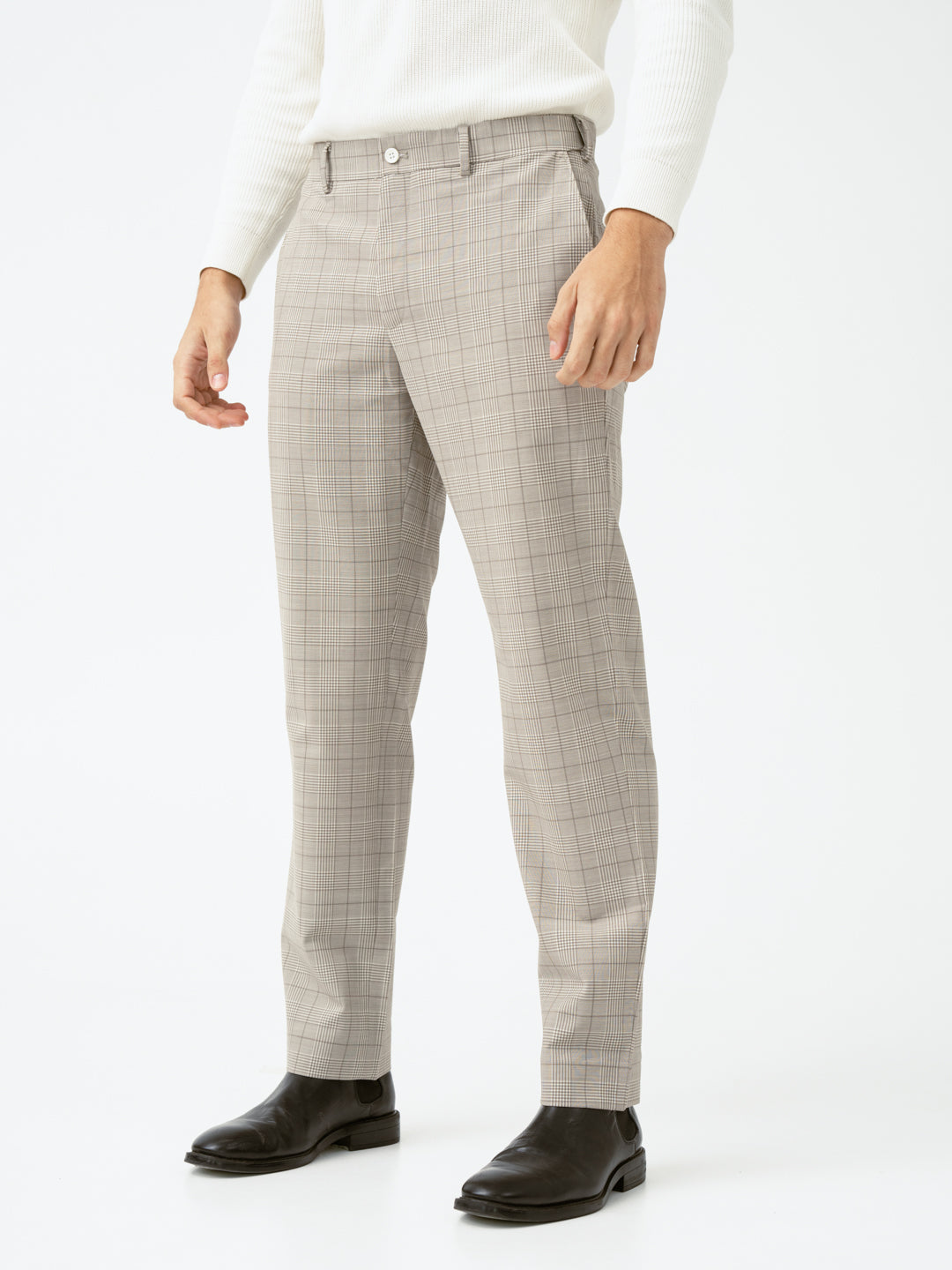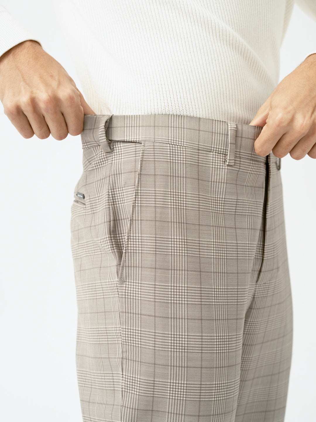 If laid-back sophistication had a dress code, the Squirrel Beige Checks Merino Wool Pants would be it. Designed with a warm beige base and minimal check detailing, they strike that perfect balance between polished and effortless. Made with breathable Merino wool and crafted with 4-way stretch, a wrinkle-resistant finish, and our FlexTech waistband, these pants move as easily as you do. Wear them to work, brunch, or even weddings—they fit right in. These Squirrel beige wool pants for men are what you get when you take comfort seriously but still care about how you look.