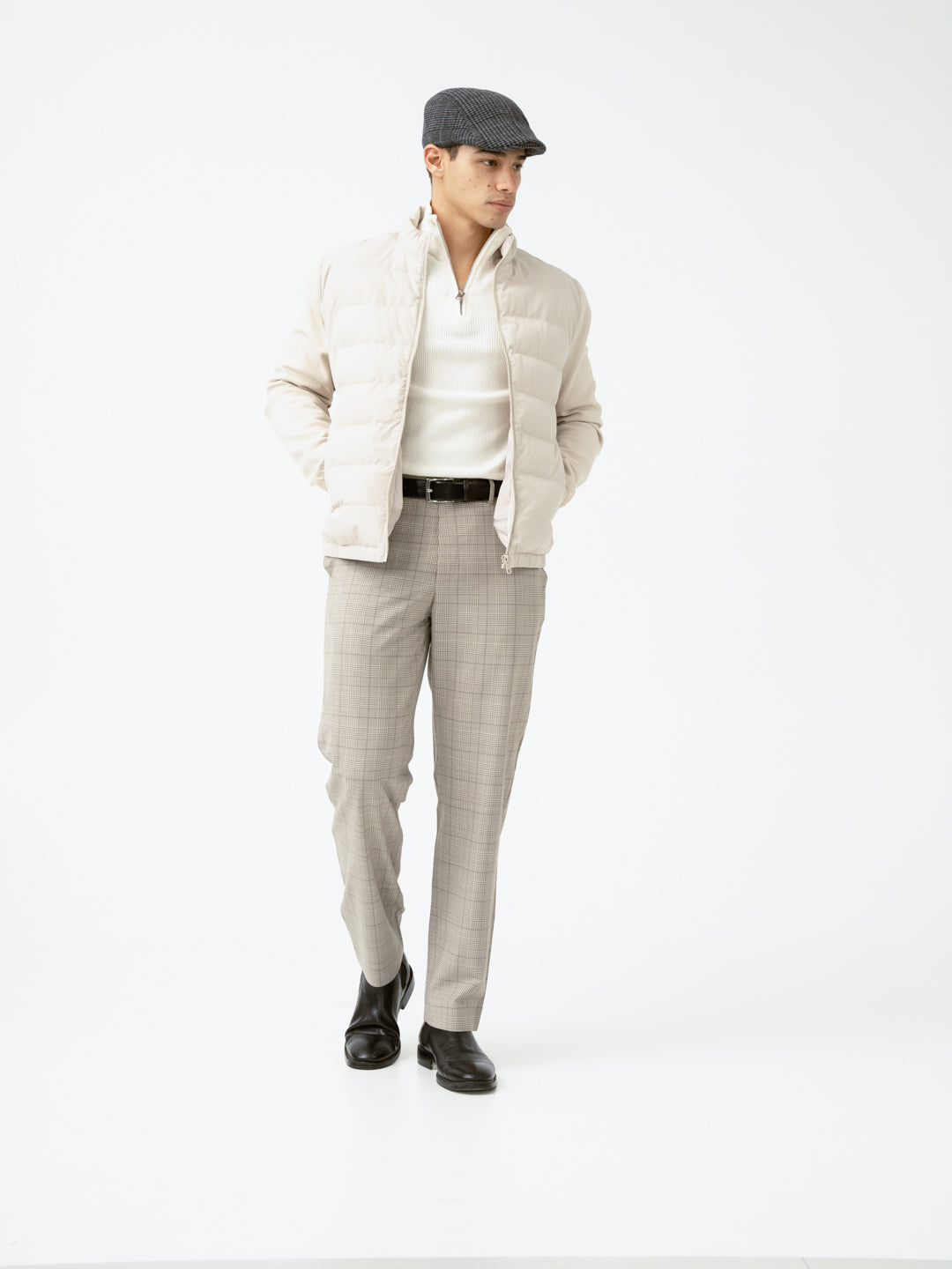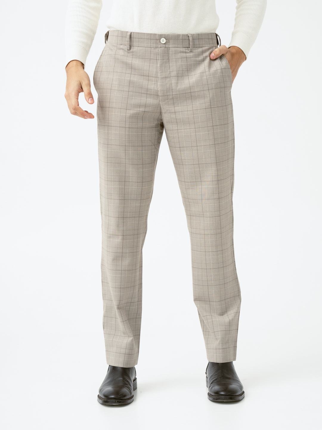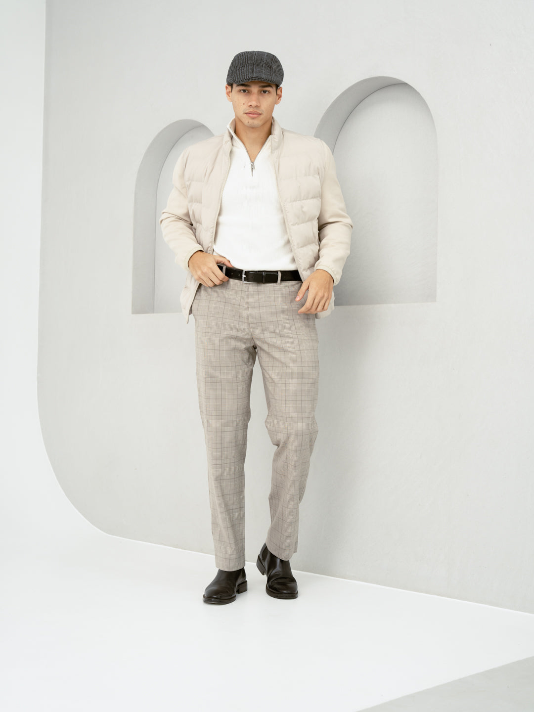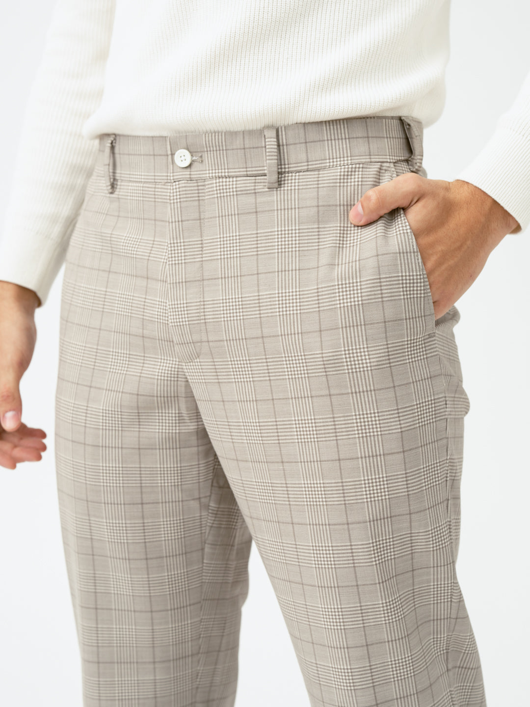 If laid-back sophistication had a dress code, the Squirrel Beige Checks Merino Wool Pants would be it. Designed with a warm beige base and minimal check detailing, they strike that perfect balance between polished and effortless. Made with breathable Merino wool and crafted with 4-way stretch, a wrinkle-resistant finish, and our FlexTech waistband, these pants move as easily as you do. Wear them to work, brunch, or even weddings—they fit right in. These Squirrel beige wool pants for men are what you get when you take comfort seriously but still care about how you look.