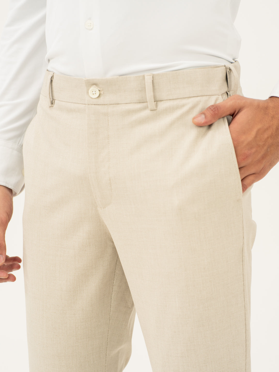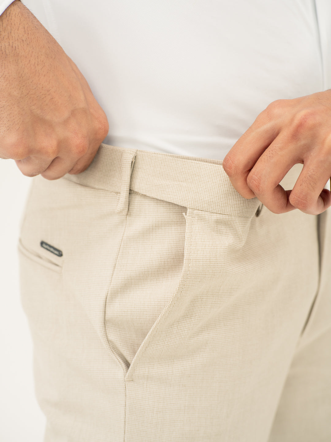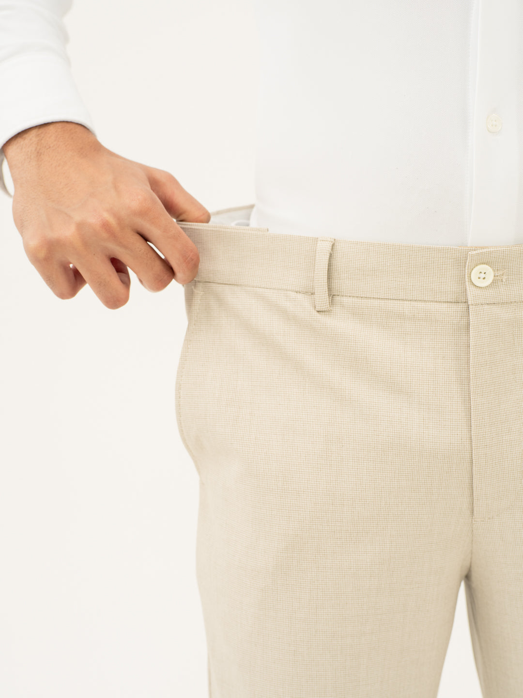 The Stone Khaki Houndstooth Pants are all about versatility and comfort. These Stone Khaki Houndstooth Formal Trousers combine classic style with modern innovation, giving you a smart look without the stiffness. Crafted with stretchable fabric, they allow freedom of movement, whether you’re in the office or on the move. The neutral color makes them easy to pair with almost anything, while the houndstooth pattern adds a touch of personality. If you’re looking for casual elegance in your khaki stretchable formal trousers, this pair delivers on both style and comfort. Ready for every occasion.