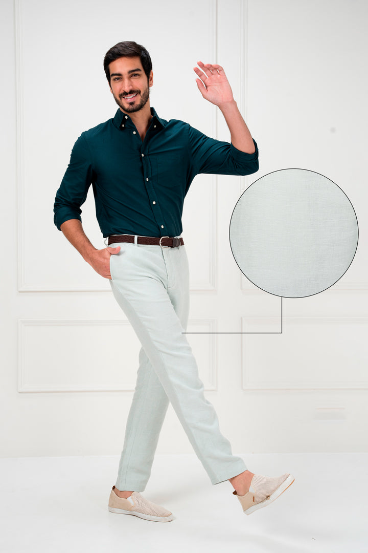 Crafted using 100% Luxurious Linen to give you lightweight, breathable comfort in every wear. Our model in the image wears a Slim Fit.