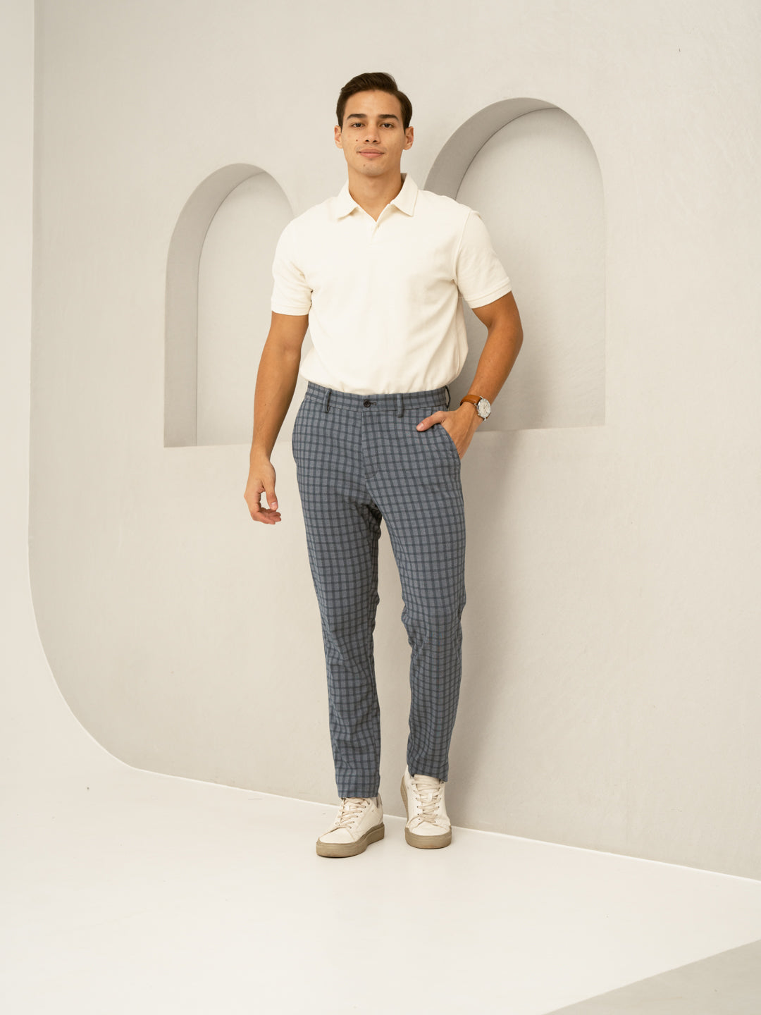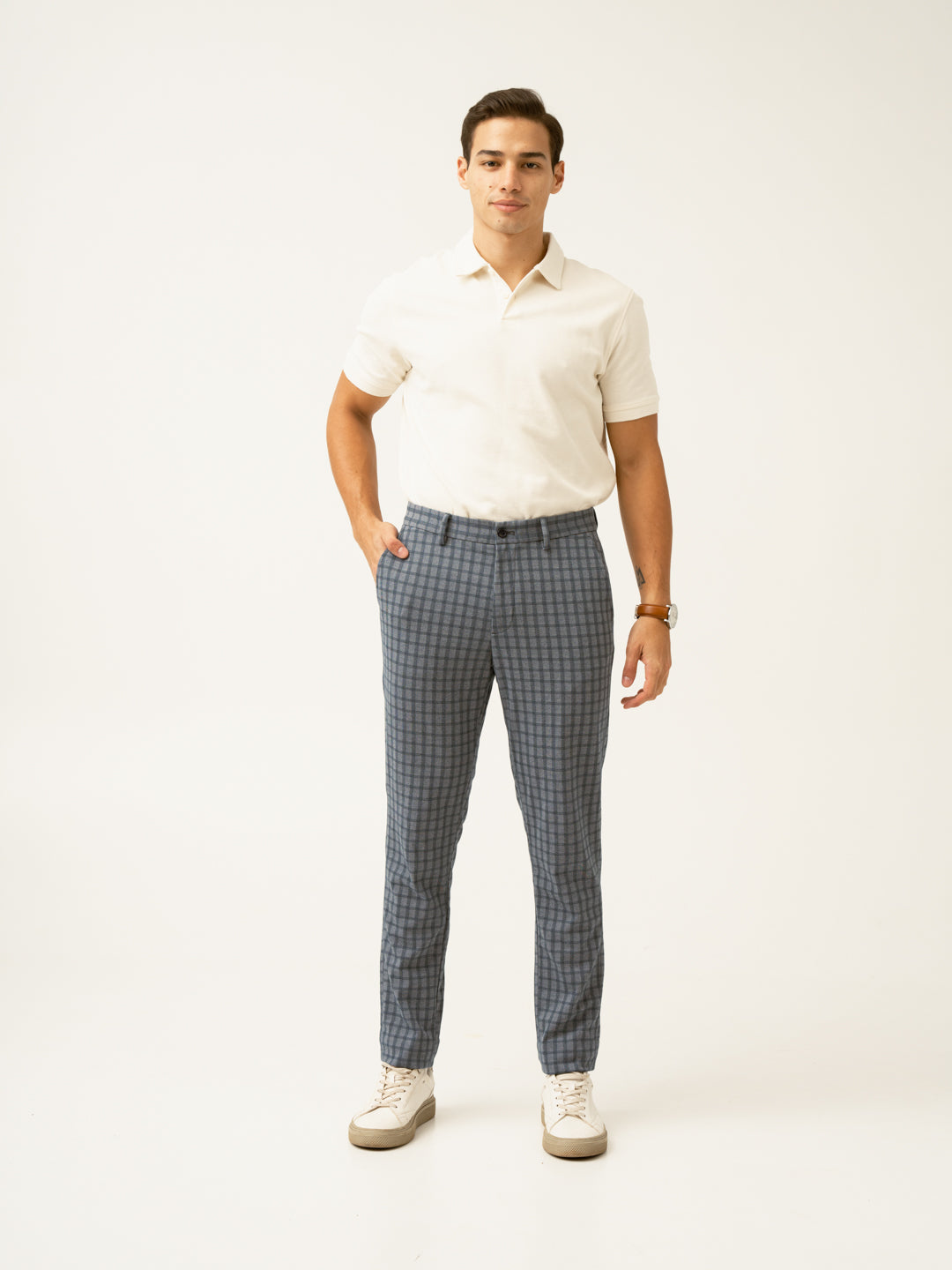 Crafted using a smart blend of 71% Polyester, 25% Viscose & 4% Elastane to give you the additional soft-stretch-comfort. Our model in the image wears a Slim Fit