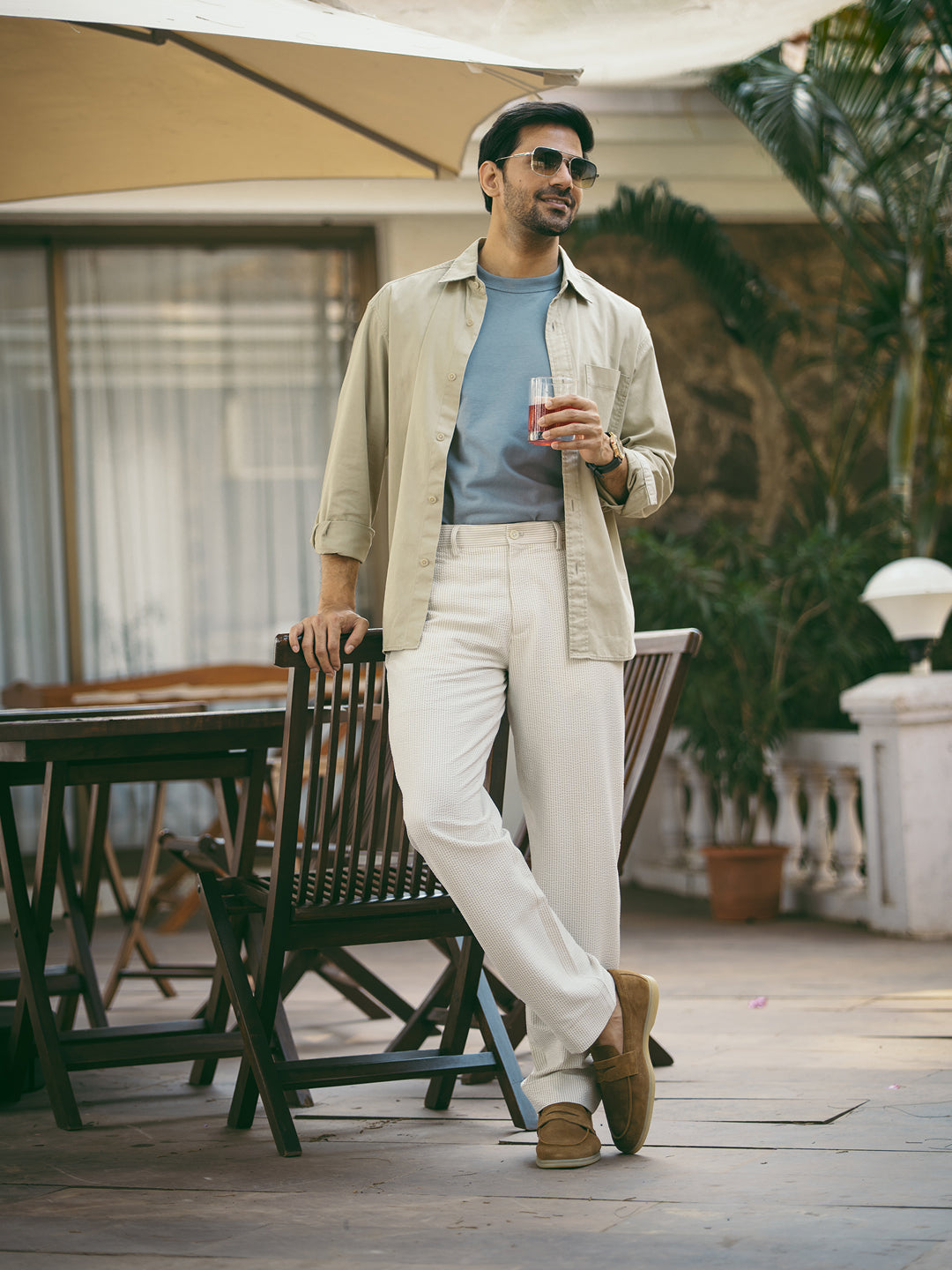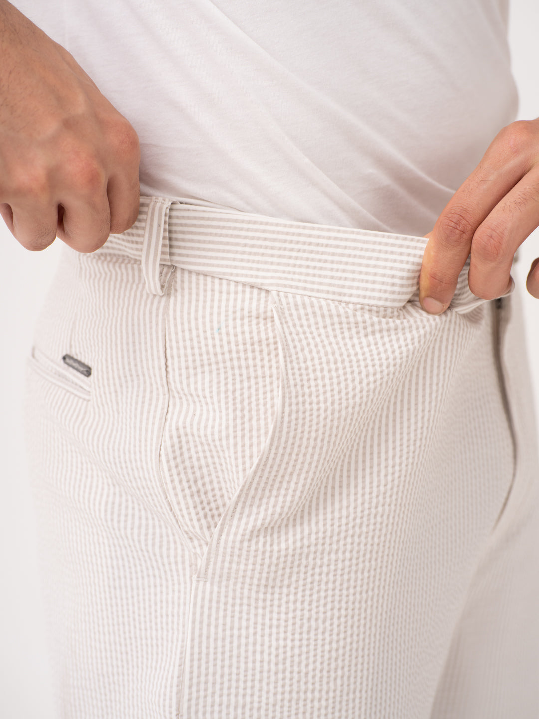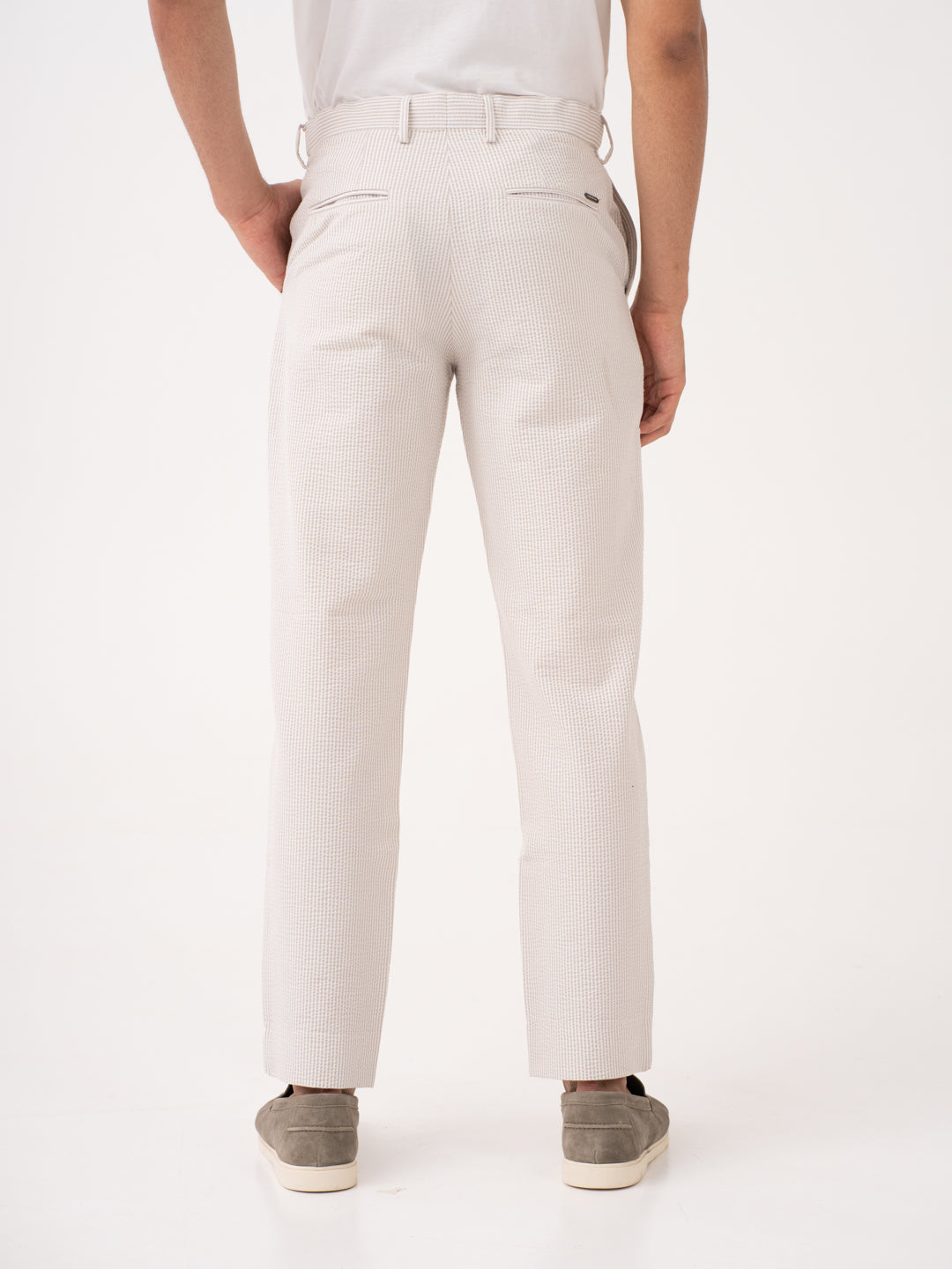 For those who crave effortless style, the Terrain Taupe Stripes Seersucker Pants is your go-to. Designed with a unique puckered texture, these pants offer superior breathability and comfort during warm weather. The Terrain Taupe stretchable seersucker trousers are crafted with stretch to ensure freedom of movement, while the moisture-wicking fabric keeps you feeling fresh throughout the day. With wrinkle-resistant properties, these pants maintain a crisp, polished look, no matter how busy your day gets. Perfect for casual outings or dressier moments, these versatile pants combine the best of fashion and function. Stay cool, stay stylish, and stay ready for anything.