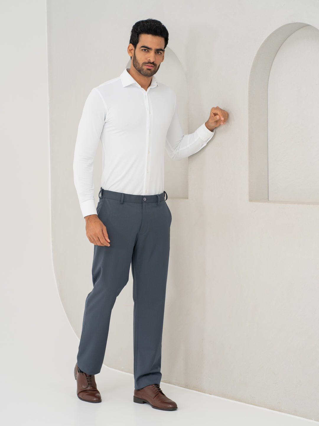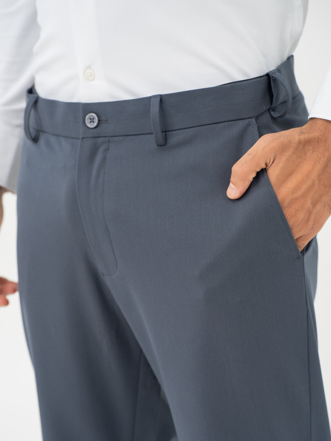 Dodging puddles, coffee spills, and the unexpected—these Thunder Grey Water Repellent Relaxed Fit Stretch Formal Pants have your back. Water-Repellent, wrinkle-resistant, and built with 4-way stretch and a FlexTech waistband, they keep you looking sharp, no matter the chaos. These black stretchable formal trousers are breathable, lightweight, and tailored for movement, making them ideal for work, travel, and after-hours plans. Stay dry, stay crisp, stay ready—because style should never be at the mercy of the weather.