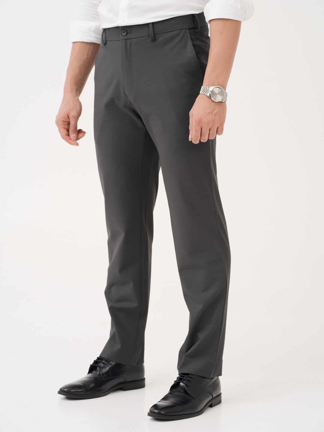 Timeless Grey Relaxed Fit Stretchable Formal Trousers | Lightweight & Breathable Formal Trousers With Flextech Waistband