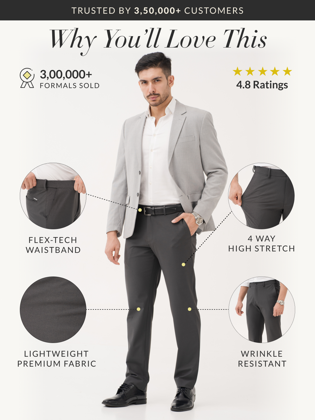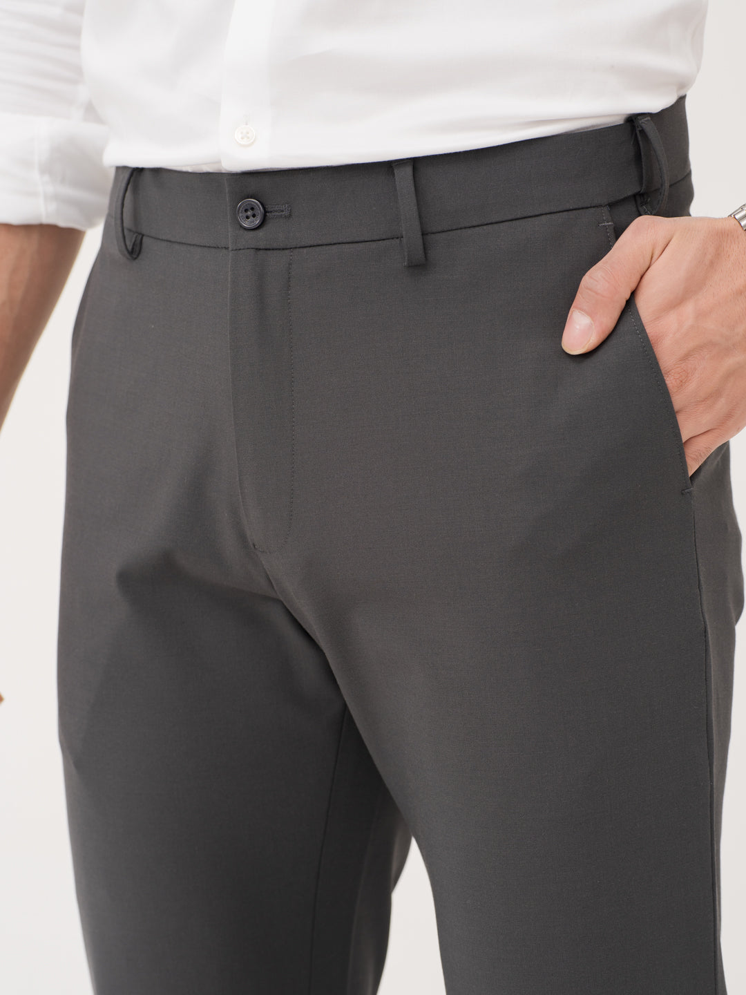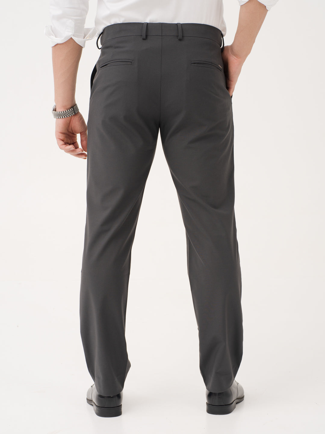 For the man who’s always on the move, the Timeless Grey Relaxed Fit Stretch Formal Pant are made to keep pace. With 4-way stretch and a FlexTech waistband, they offer unmatched comfort from morning meetings to midnight plans. The wrinkle-resistant, moisture-wicking fabric keeps you looking fresh, while the rich navy colour brings effortless polish. Lightweight, breathable, and sharp—it’s everything you want in your everyday pair. These grey stretchable formal trousers (in a navy twist) are the wardrobe staple you didn’t know you needed, but won’t want to take off.