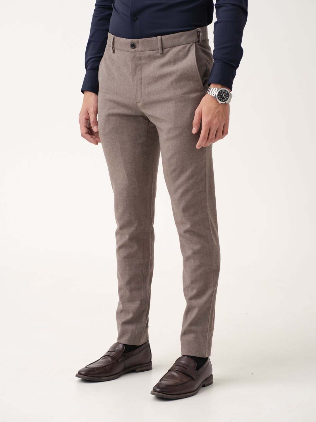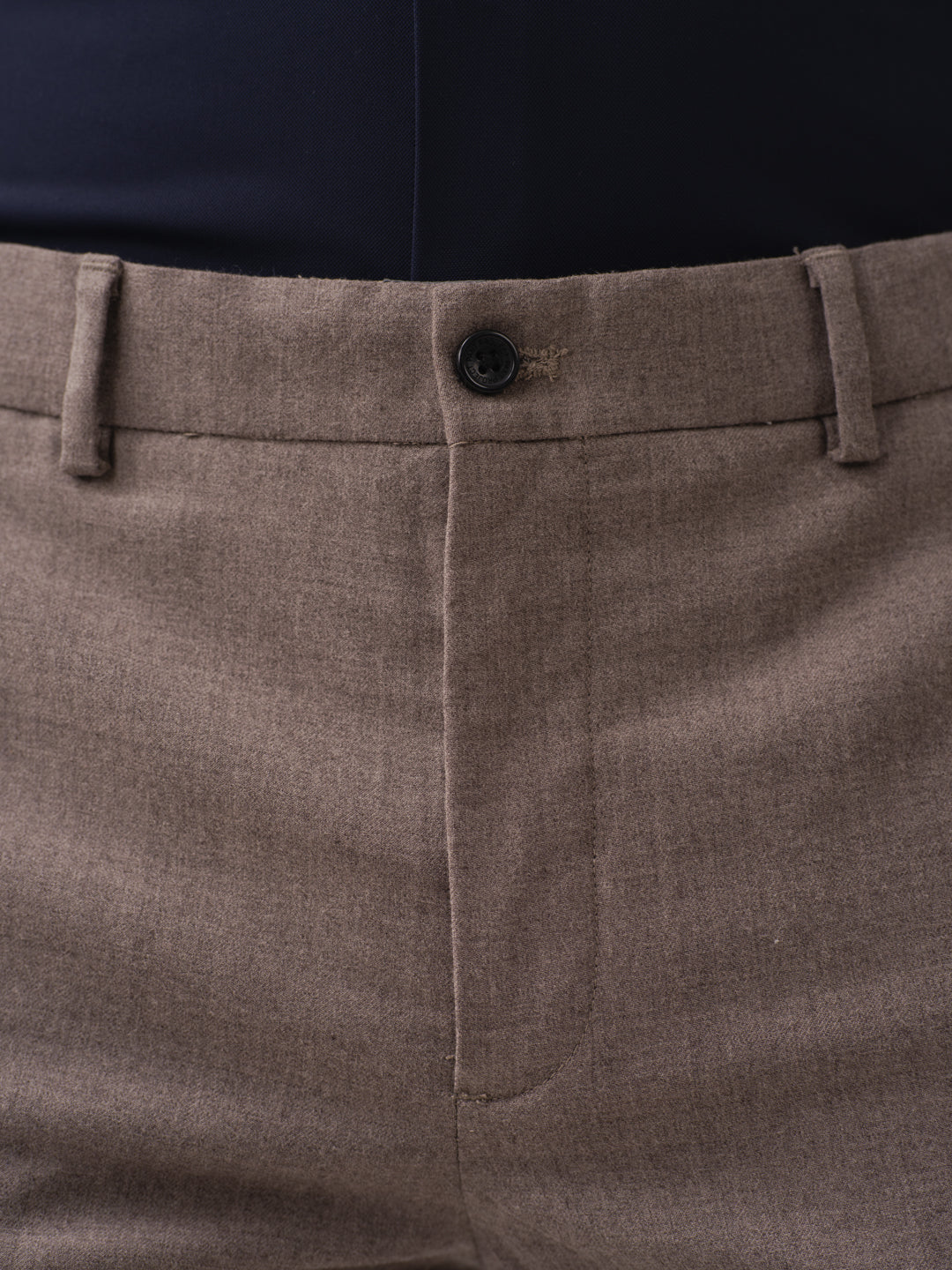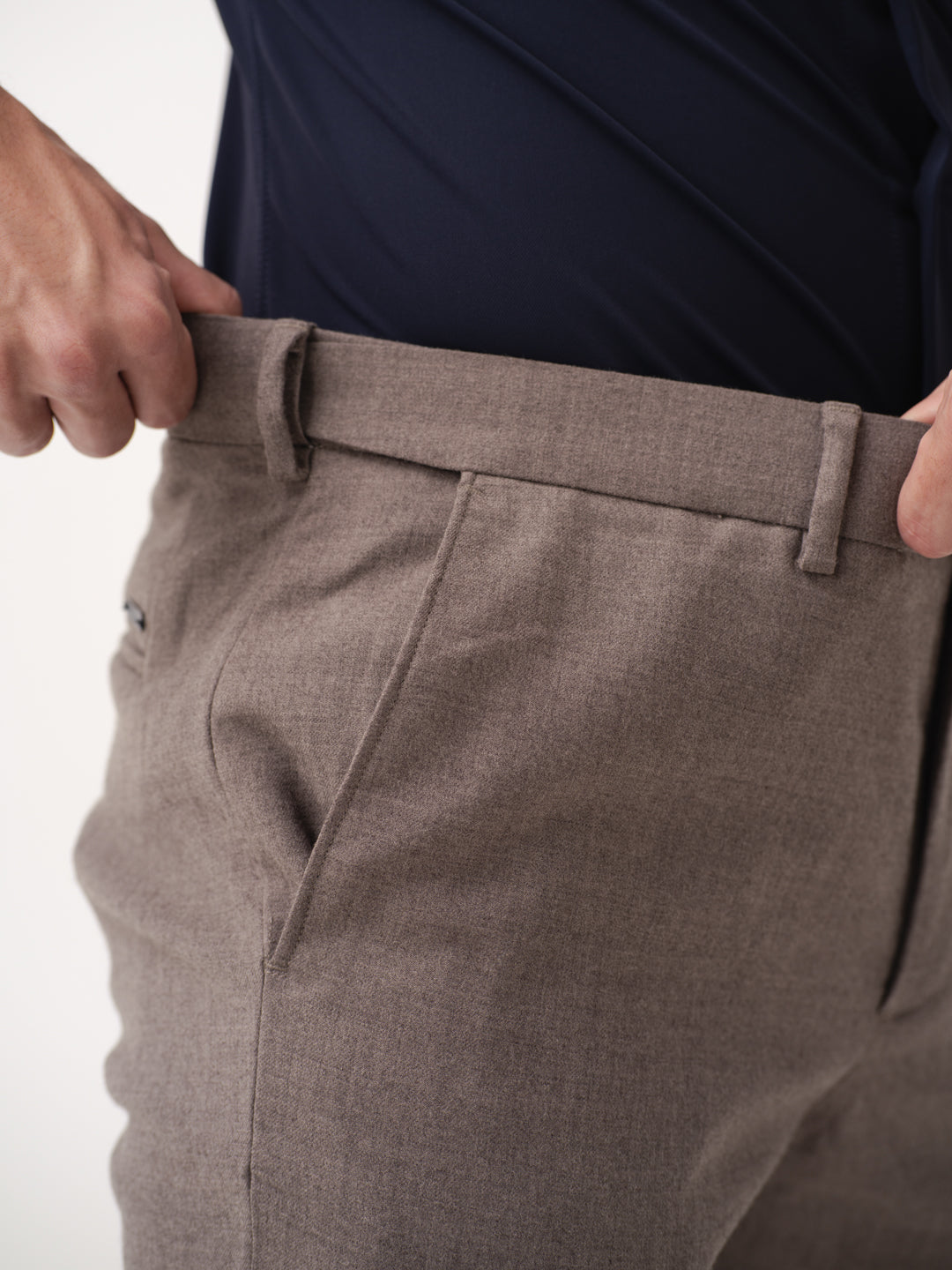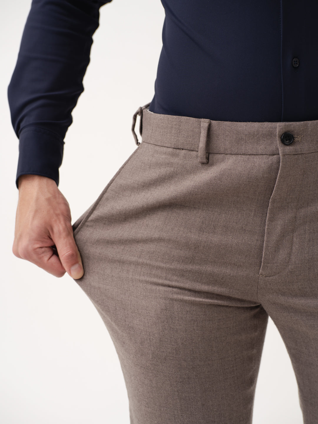 The Tortona Brown Merino Wool Pants are your answer to refined comfort. Designed with 4-way stretch and a FlexTech waistband, they let you move through your day with ease—no pulling, no stiffness. Made from soft, breathable Merino wool that’s wrinkle-resistant and thermo-regulating, they’re ideal for back-to-back plans. The deep brown colour brings a warm, rich tone that works from office hours to evening plans. These Tortona brown wool pants for men are a wardrobe staple with a little extra edge—sharp, subtle, and always ready for action.