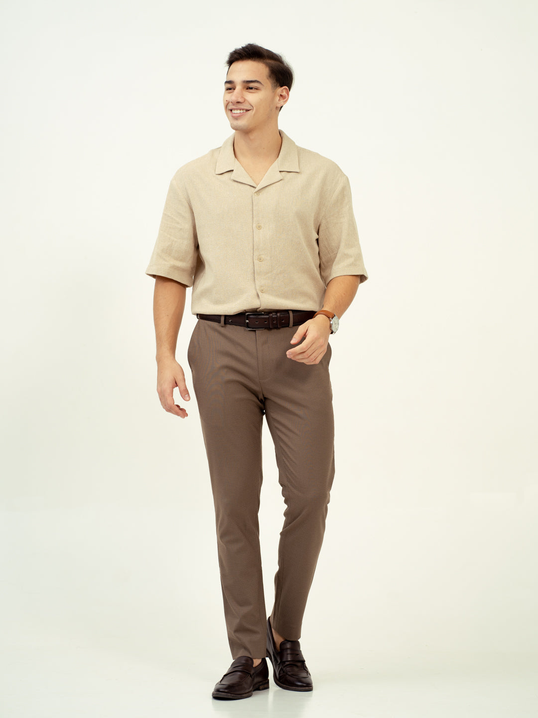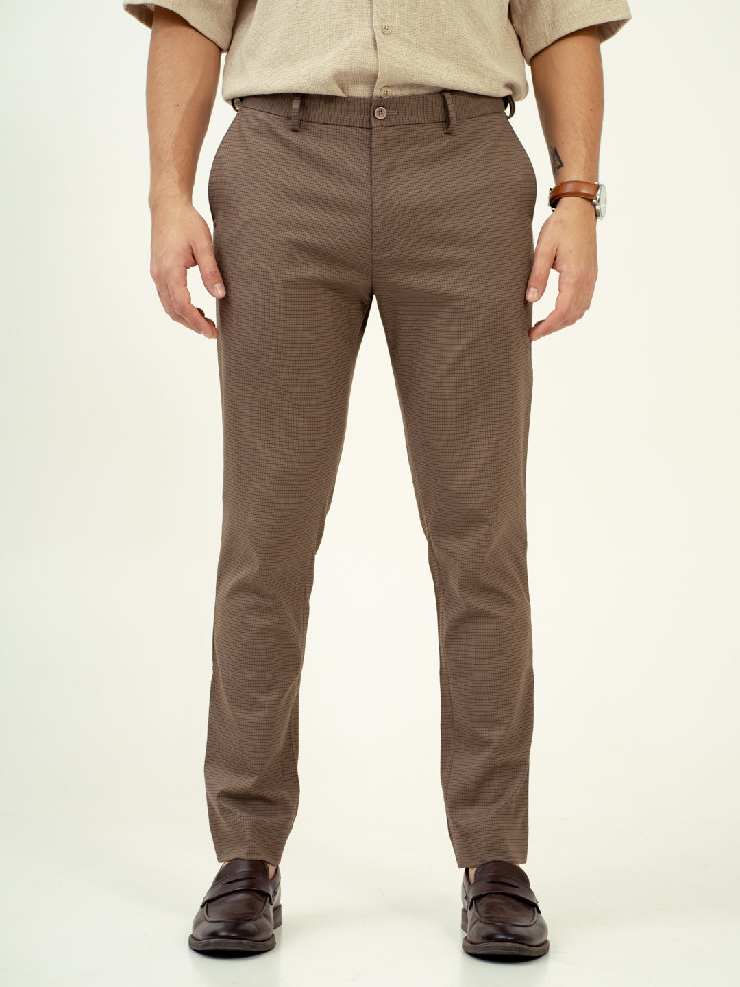 The Umber Brown Micro Checks Stretch Formal Pants offer a distinctive style for those who prefer subtle patterns with a touch of warmth. These Umber Brown Micro Checks Formal Trousers are designed with stretchable fabric for ease of movement and comfort, making them perfect for long days at the office or evening events. The rich brown tones and micro-check design make them a versatile addition to your wardrobe. For those looking for brown stretchable formal trousers with a unique look, these pants are ideal for any occasion.