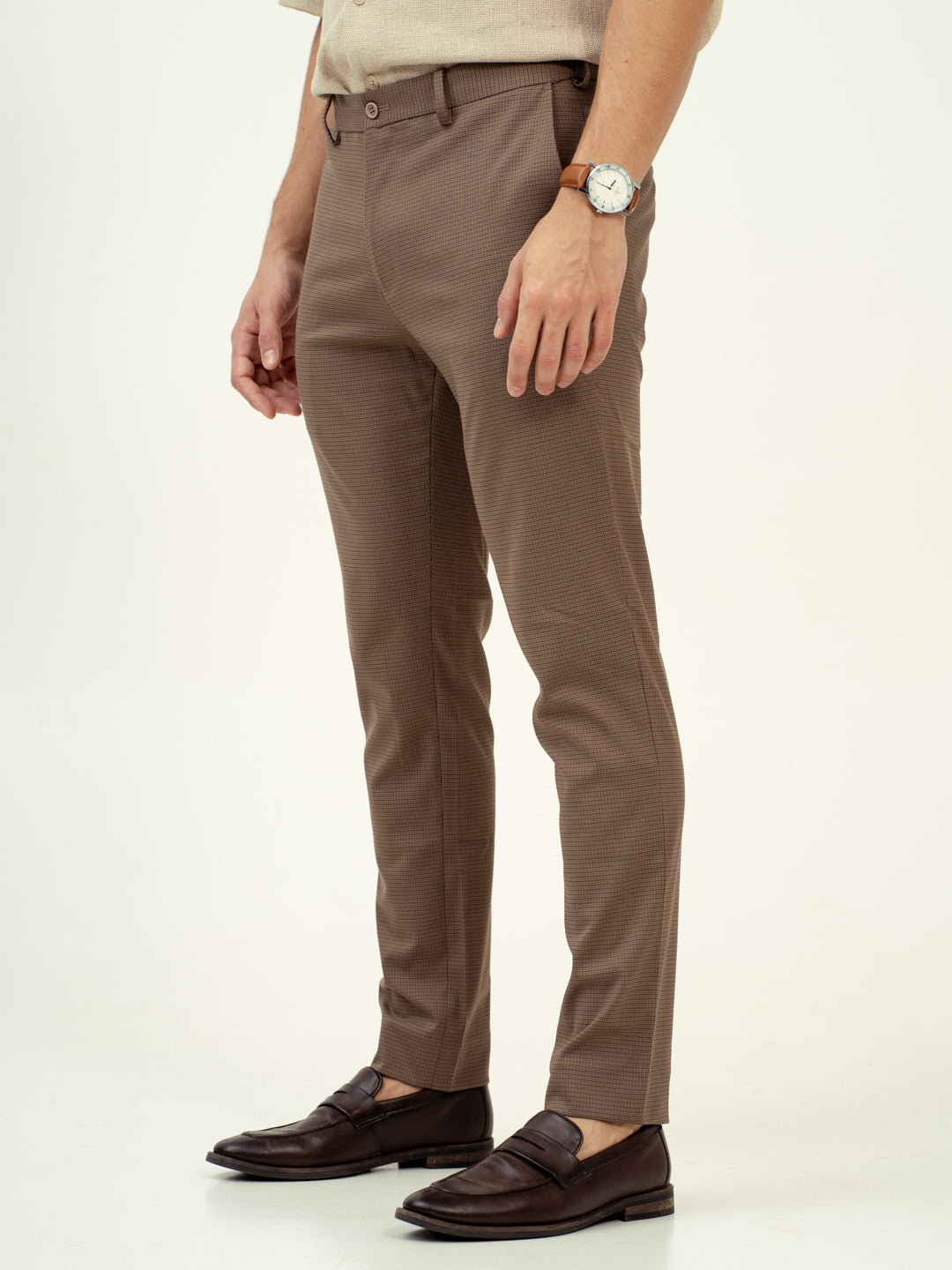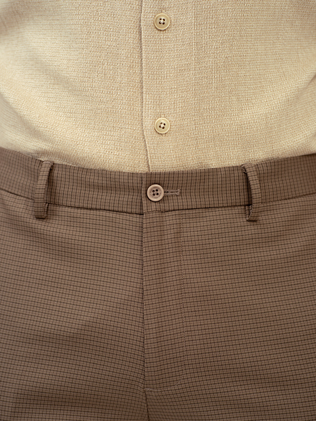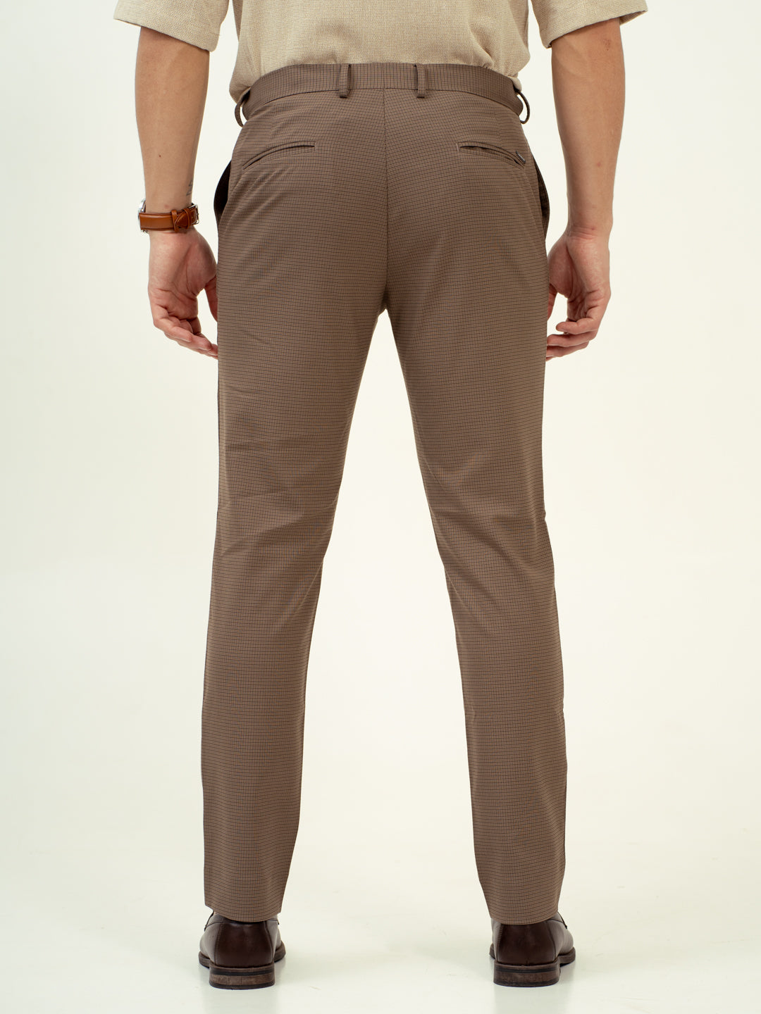 Umber Brown Micro Checks Stretch Formal Pants