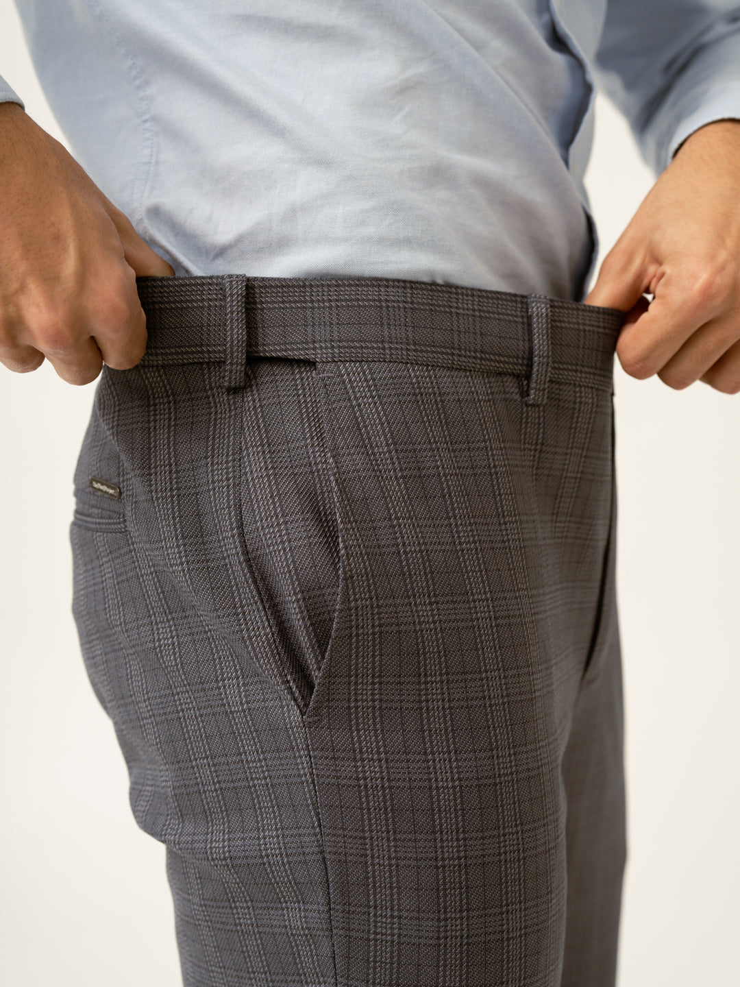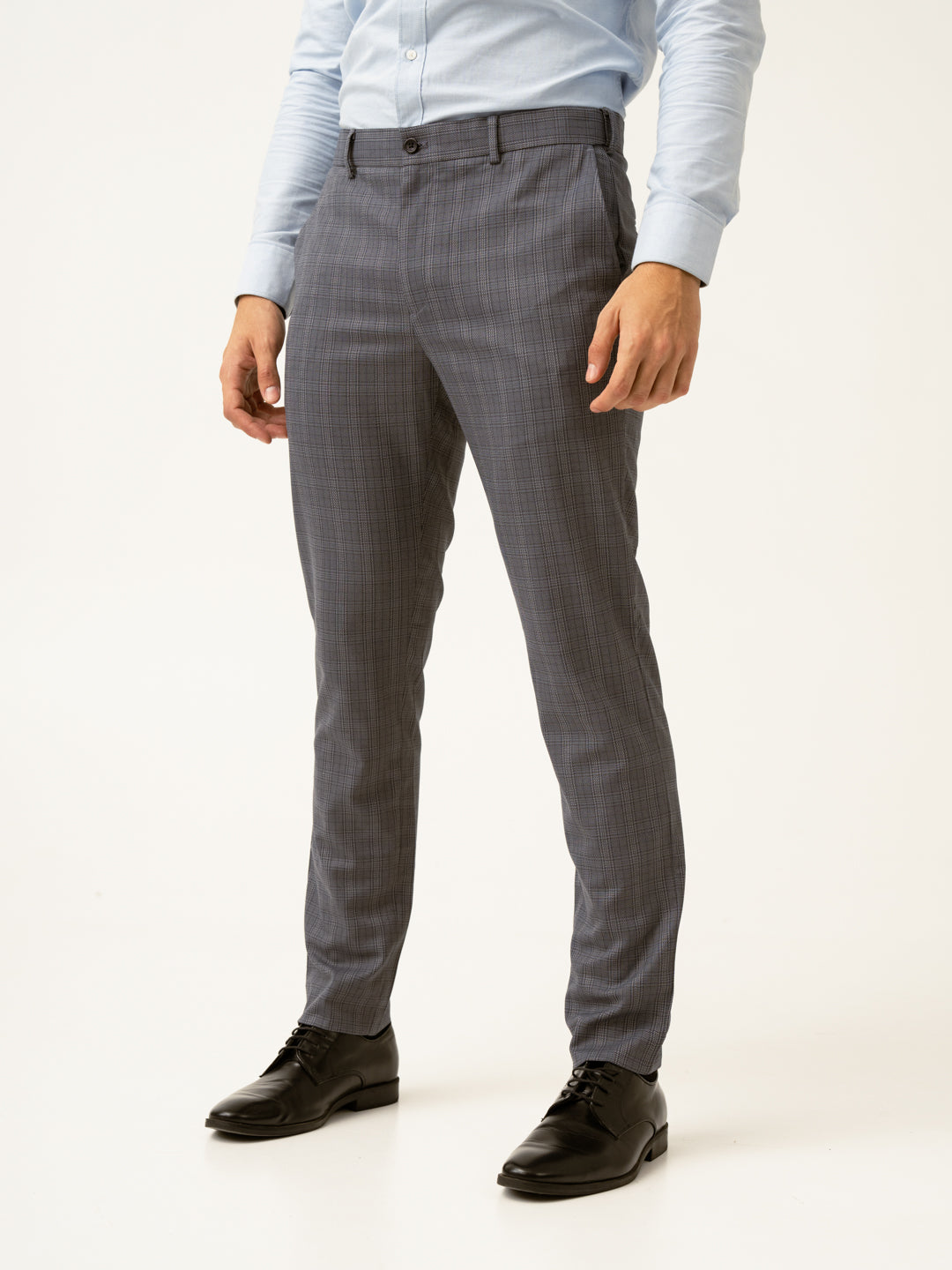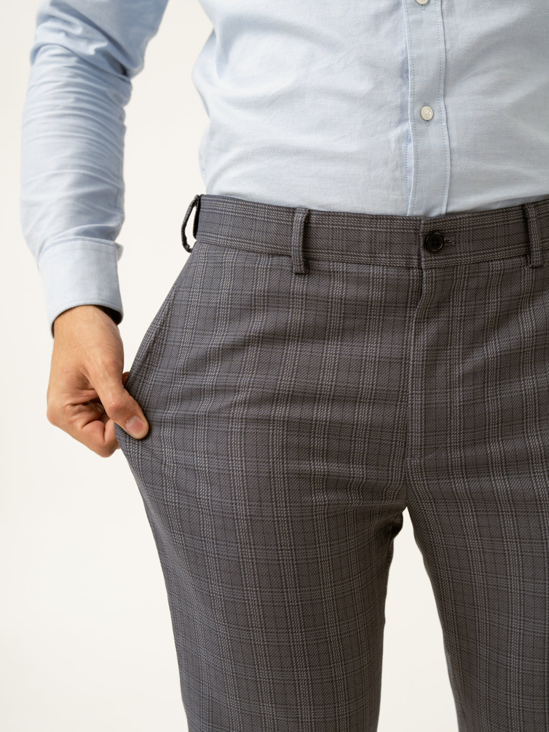 Whisper Grey Checks Formal Pants