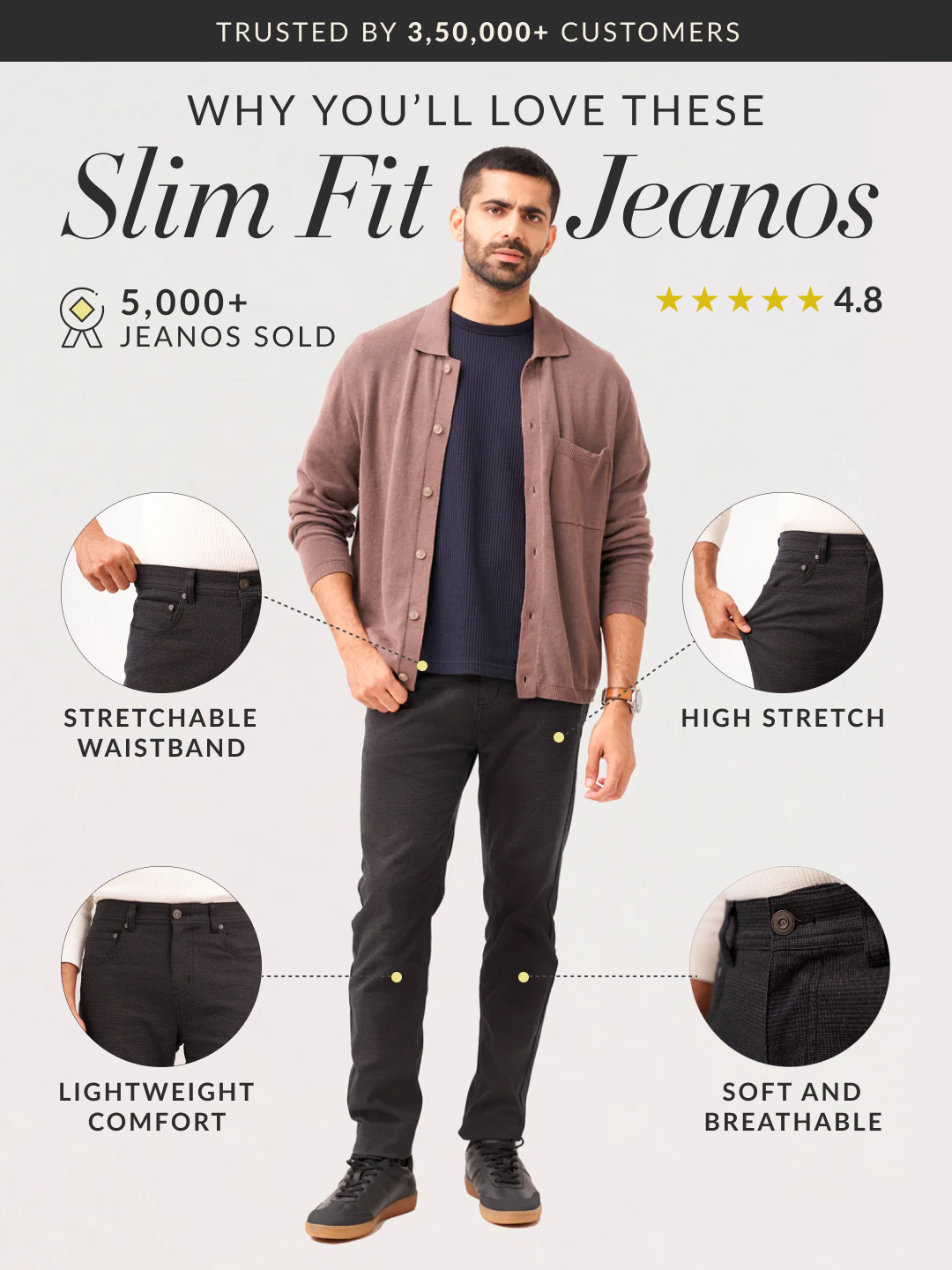 Crafted using a premium blend 51% Cotton, 31% Polyester, 16 % Viscose & 2% Elastane for lightweight comfort and additional stretch for semi-formal wear. Our model in the images wears a Slim Fit.